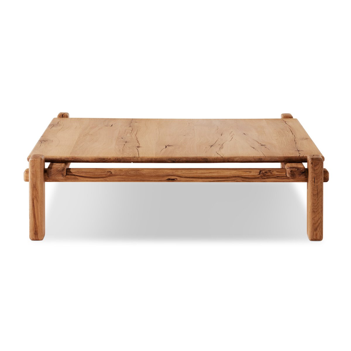Overall Dimensions 54.25"w x 50.00"d x 14.00"hItem Number 242147-001Colors Natural Reclaimed French OakMaterials Solid Reclaimed OakWeight 112.43 lbVolume 32.81 cu ftClearance from Floor 1 9.37"Distance between Legs (Front to Back) 1 43.11"Distance between Legs (Side to Side) 1 46.65"Leg/Base Depth 1 2.32"Leg/Base Height 1 13.90"Leg/Base Width 1 3.82"Tabletop Thickness 1.18"Drawer Glide Type NoneDrawer Stop Material NoneFrame Construction Joinery Corner-block/CleatFrame Construction Joinery Mortise and TenonFunctionality NoneHas Leveler YesProtective Feet Leg LevelersShape Type SquareSuite MarciaWeight Capacity 100 lb