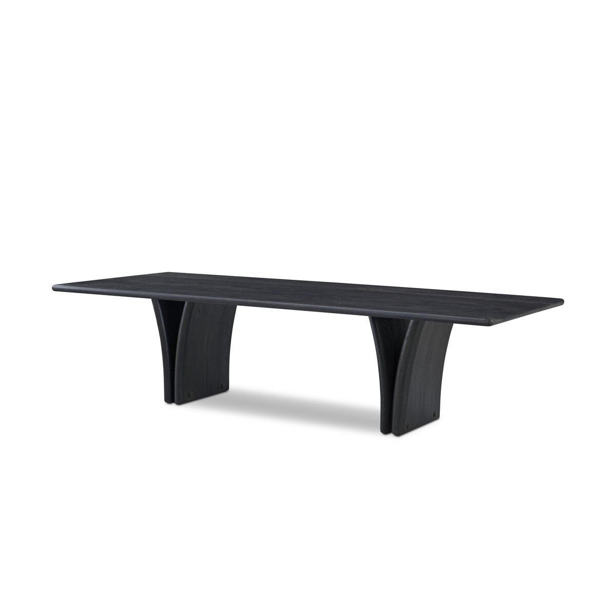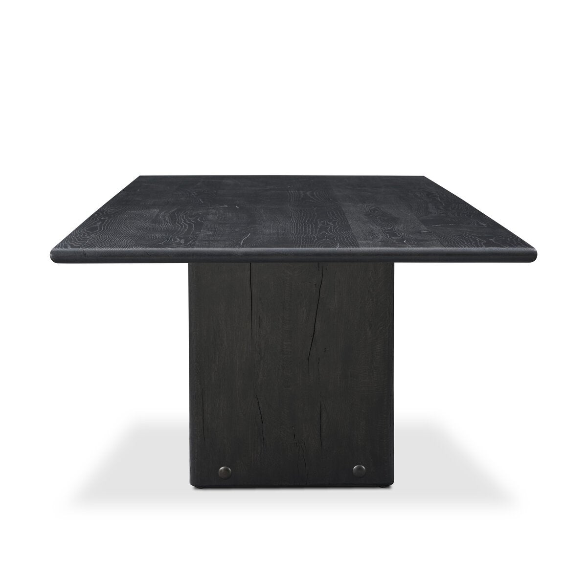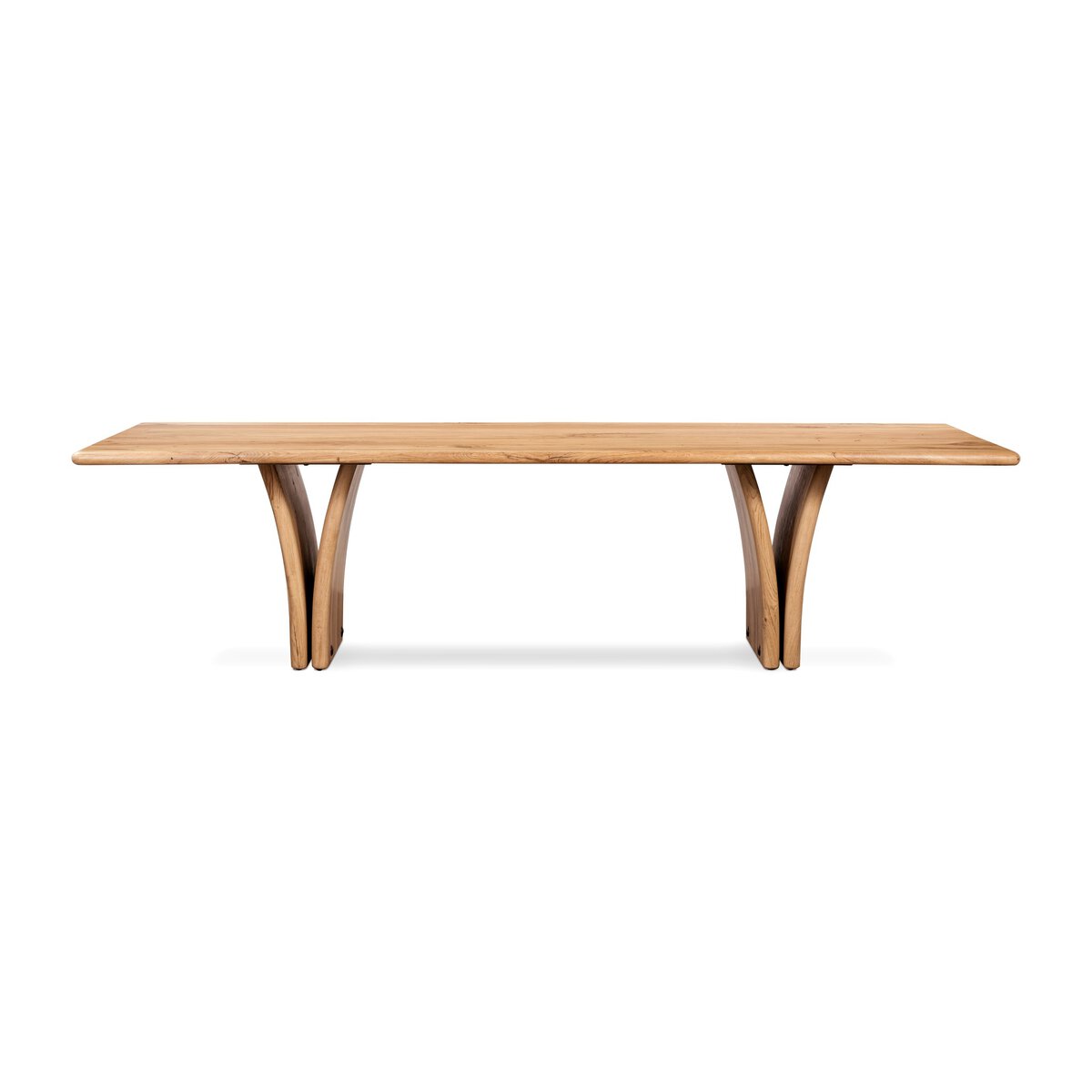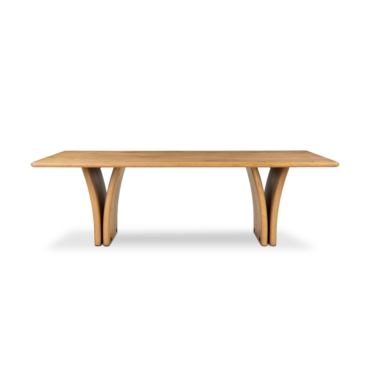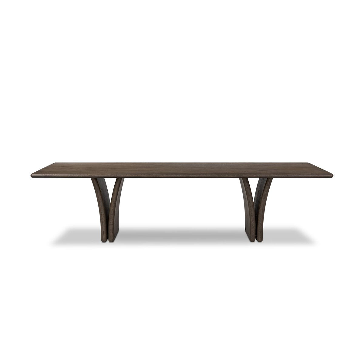 Designed by Thomas Bina and Ronald Sasson, a design partnership blending both modern minimalist and Brazilian influences. Grand-scale dining table is crafted from natural reclaimed French oak with tapered pedestal panels connected at the base.