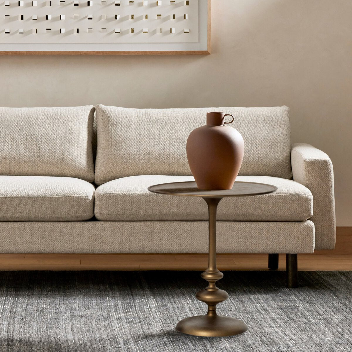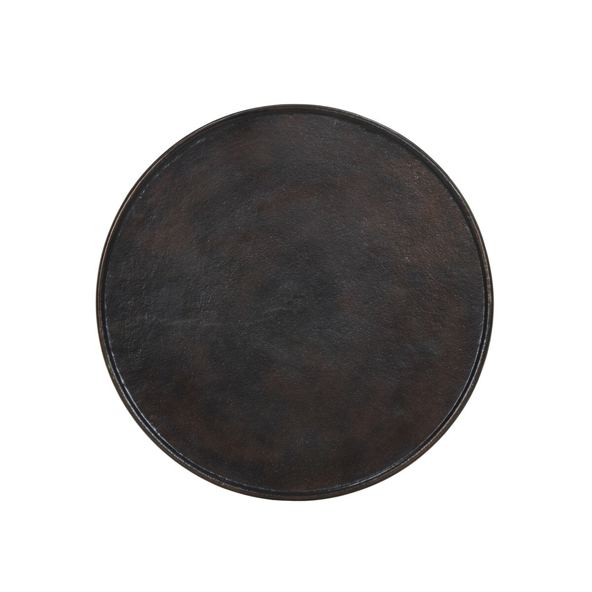 Overall Dimensions 20.00"w x 20.00"d x 22.00"hItem Number 101628-003Colors Antique RustMaterials AluminumWeight 11.24 lbVolume 1.94 cu ftClearance from Floor 1 21.75"Leg/Base Depth 1 11.00"Leg/Base Height 1 2.50"Leg/Base Width 1 11.00"Overhang Width 1 4.25"Tabletop Thickness 0.25"Drawer Glide Type NoneDrawer Stop Material NoneFunctionality NoneShape Type RoundSuite MarlowWeight Capacity 100 lb