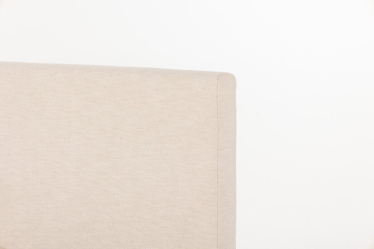Overall Dimensions 93.25"w x 94.00"d x 47.50"hItem Number 240042-002Colors Bergamo ParchmentMaterials 75% Cotton, 25% Flax/LinenWeight 288.14 lbVolume 36.16 cu ftDistance between Slats 3.00"Floor to Top of Slat Height 9.50"Footboard Height 11.50"Footboard Thickness 8.00"Footboard Width 92.75"Headboard Height 47.50"Headboard Thickness 5.00"Headboard Width 93.25"Interior Dimension for Mattress Depth 80.50"Interior Dimension for Mattress Height 2.00"Interior Dimension for Mattress Width 76.75"Interior Frame Depth (Without Slats and Center Rail) 80.50"Interior Frame Width (Without Slats and Center Rail) 76.75"Side Rails Height 11.50"Side Rails Length 81.00"Side Rails Thickness 8.00"Adjustable Bed Frame Compatible YesBed Backing Dark FabricBed Material UpholsteredBox Spring Required Not RequiredCleaning Code