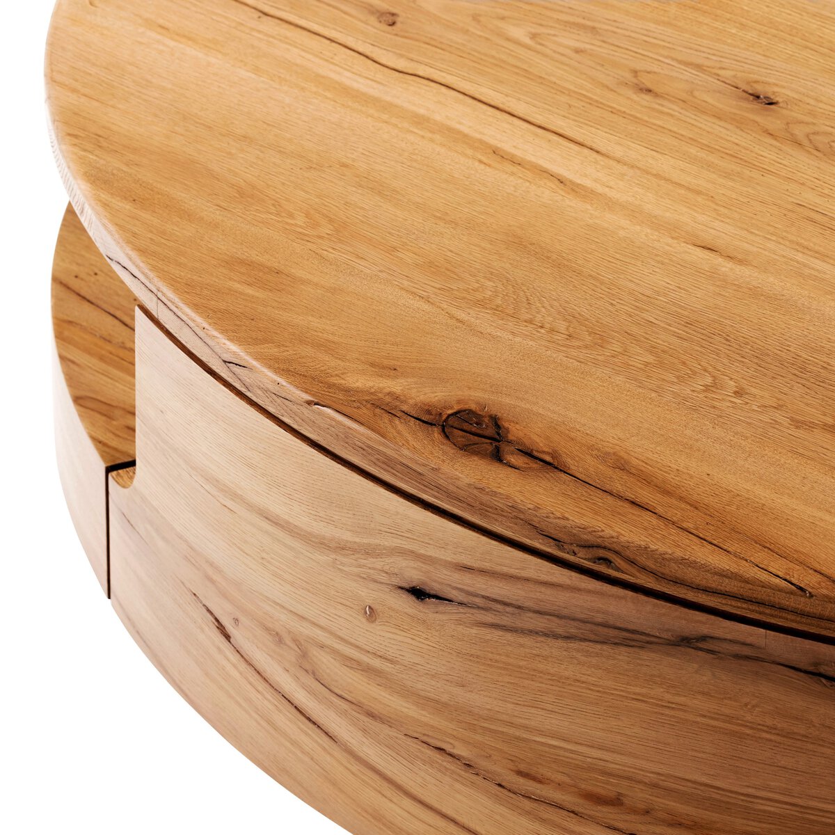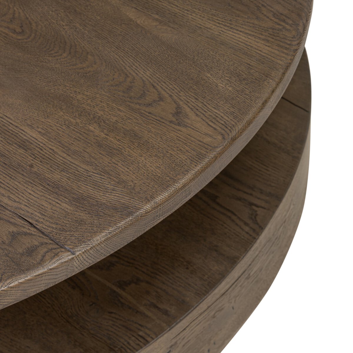 Overall Dimensions 55.00"w x 55.00"d x 13.75"hItem Number 242135-001Colors Natural Reclaimed French OakMaterials Solid Reclaimed OakWeight 189.38 lbVolume 34.47 cu ftClearance from Floor 1 0.98"Interior Section Depth 1 55.12"Interior Section Height 1 6.69"Interior Section Width 1 47.91"Leg/Base Depth 1 45.63"Leg/Base Height 1 0.98"Leg/Base Width 1 39.61"Overhang Width 1 7.76"Tabletop Thickness 1.18"Drawer Glide Type NoneDrawer Stop Material NoneFrame Construction Joinery Butt JointFrame Construction Joinery Corner-block/CleatFunctionality ShelvesHas Leveler YesInterior Section Quantity 1.00Protective Feet Leg LevelersShape Type RoundSuite MatheusWeight Capacity 100 lb