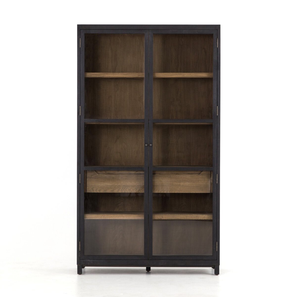 Overall Dimensions 47.25"w x 17.75"d x 82.75"hItem Number 100599-002Colors Drifted Oak Veneer, Drifted Oak SolidMaterials Oak Veneer, Solid OakWeight 306.44 lbVolume 59.12 cu ftClearance from Floor 1 1.77"Distance 1 between Adjustable Shelves 2.52"Door Height 1 75.98"Door Thickness 1 1.38"Door Width 1 22.64"Drawer Depth 1 11.10"Drawer Height 1 4.53"Drawer Width 1 39.17"Fixed Shelf Depth 1 14.09"Fixed Shelf Height 1 1.57"Fixed Shelf Width 1 45.12"Interior Section Depth 1 14.09"Interior Section Depth 2 14.09"Interior Section Depth 3 14.09"Interior Section Height 1 22.20"Interior Section Height 2 14.25"Interior Section Height 3 29.61"Interior Section Width 1 45.12"Interior Section Width 2 45.12"Interior Section Width 3 45.12"Removable Shelf (Fixed or Adjustable) Depth 1 14.09"Removable Shelf (Fixed or Adjustable) Height 1 1.57"Removable Shelf (Fixed or Adjustable) Width 1 45.12"Cabinet Storage Type DisplayDoor Closure Catch Type MagneticDoor Qty 2.00Door Type HingedDrawer Glide Color BlackDrawer Glide Type Sidemount MetalDrawer Joinery English DovetailDrawer Quantity 1.00Drawer Stop Material NoneFixed Shelf Qty 2.00Fixed Shelves YesFrame Construction Joinery Corner-block/CleatFrame Construction Joinery Edge Banded VeneerFrame Construction Joinery English DovetailFrame Construction Joinery NailsFunctionality DoorsFunctionality DrawersFunctionality ShelvesHinge Type BarrelInterior Section Quantity 3.00Protective Feet Leg LevelersRecommended Shelf Capacity (kg) 18.14Recommended Shelf Capacity (lbs) 40.00Removable Shelf YesRemovable Shelf Adjustable? YesRemovable Shelf Qty 2.00Shape Type SingleSuite Millie