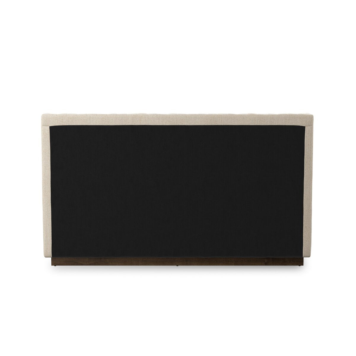 Overall Dimensions 81.00"w x 86.00"d x 46.50"hItem Number 227776-008Colors Thames Cream, Weathered SepiaMaterials 66% Polyester, 19% Acrylic, 15% Flax/Linen, Solid ParawoodFabric PerformanceWeight 228.18 lbVolume 26.87 cu ftClearance from Footboard 2.99"Clearance from Headboard 2.99"Clearance from Side Rails 2.99"Distance between Slats 2.76"Floor to Top of Slat Height 8.23"Footboard Height 11.18"Footboard Thickness 2.36"Footboard Width 81.02"Headboard Height 46.46"Headboard Thickness 6.69"Headboard Width 81.02"Interior Dimension for Mattress Depth 80.51"Interior Dimension for Mattress Height 2.76"Interior Dimension for Mattress Width 77.01"Side Rails Height 7.99"Side Rails Length 76.97"Side Rails Thickness 2.36"Slat Width 2.76"Adjustable Bed Frame Compatible YesBed Backing Fully Upholstered (In selected Colored Material)Bed Material UpholsteredBox Spring Required Not RequiredCleaning Code