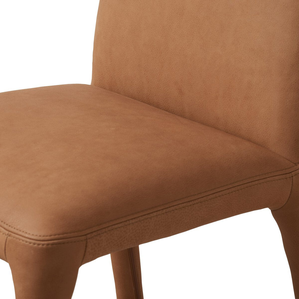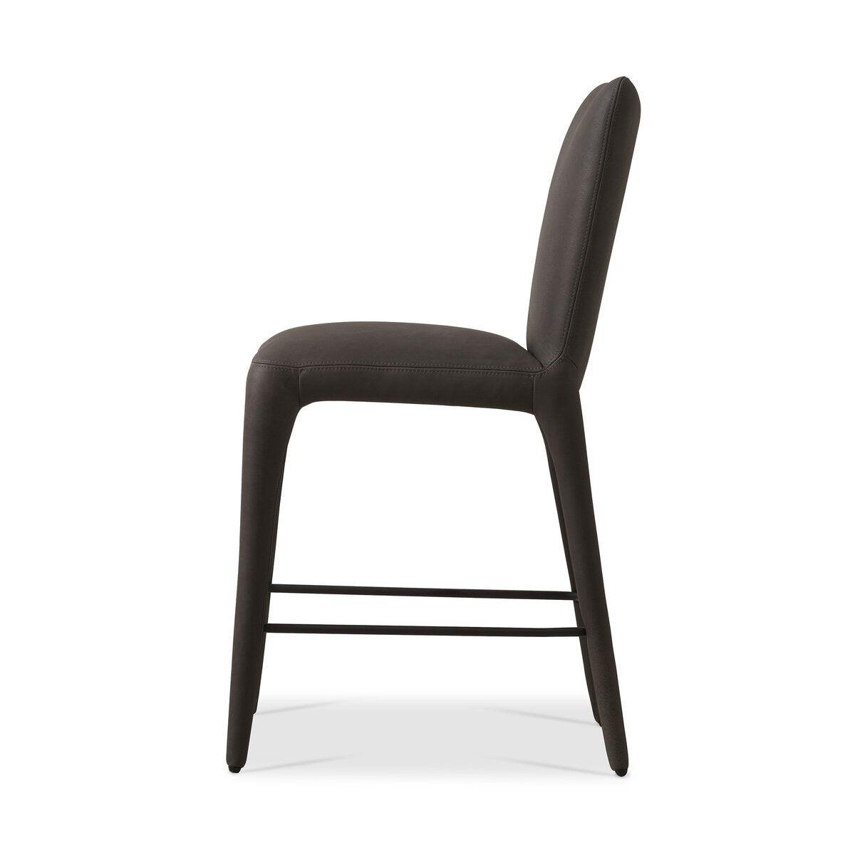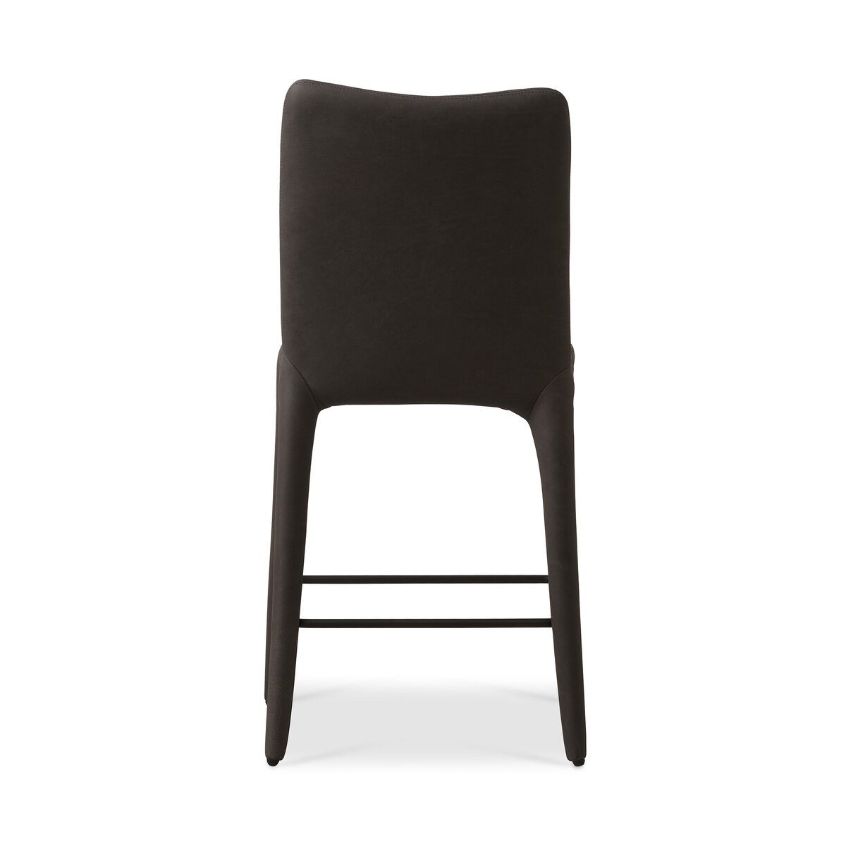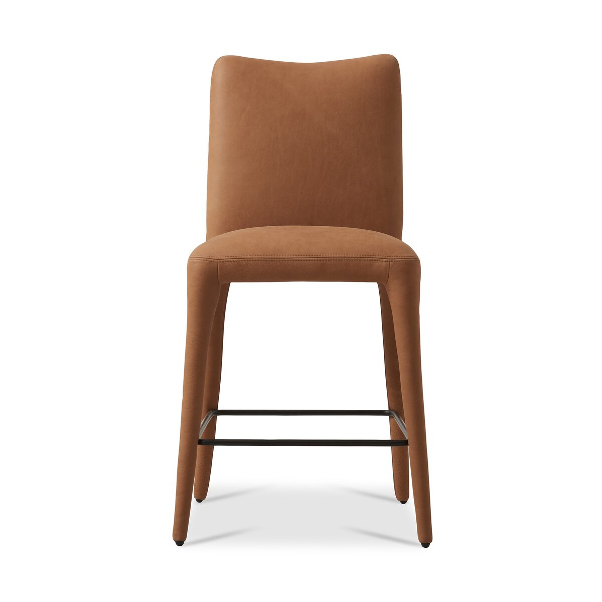 Shapely and sleek, with a scooped back and tapered legs, camel top-grain leather brings total sophistication to this counter stool. Accented by a gunmetal footrest.