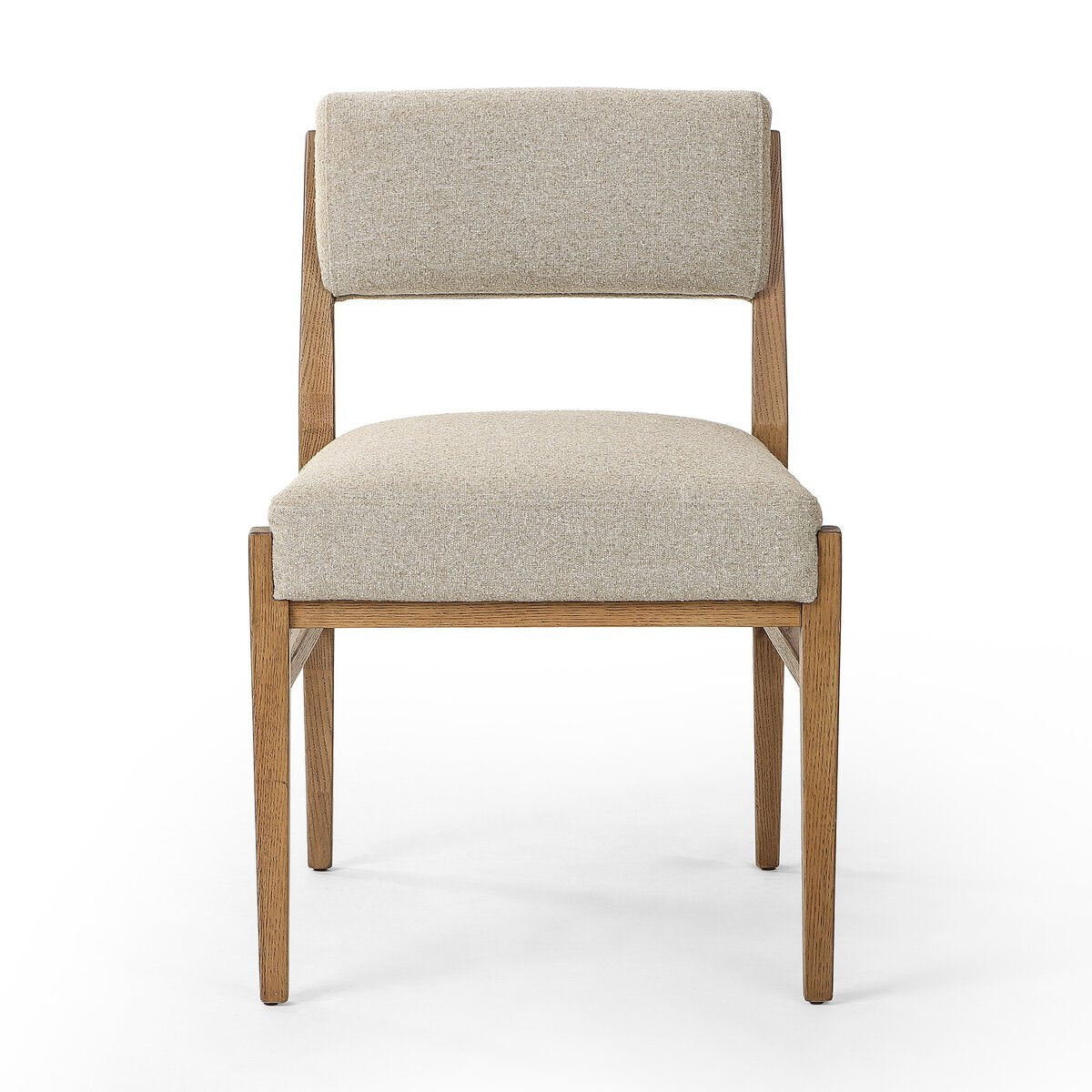Overall Dimensions 22.00"w x 25.00"d x 32.50"hItem Number 245343-003Colors Weslie Flax, Smoked GreyMaterials 100% Recycled Olefin, Solid OakWeight 19.25 lbVolume 10.28 cu ftClearance from Floor 1 11.30"Distance between Legs (Front to Back) 1 20.16"Distance between Legs (Side to Side) 1 19.49"Seat Back Height 12.20"Seat Depth 1 18.94"Seat Height 1 20.28"Seat Width (Back) 16.93"Seat Width (Front) 20.47"Back Cushion Attachment FixedBack Cushion Qty 1.00Chair Arm Option ArmlessCleaning Code