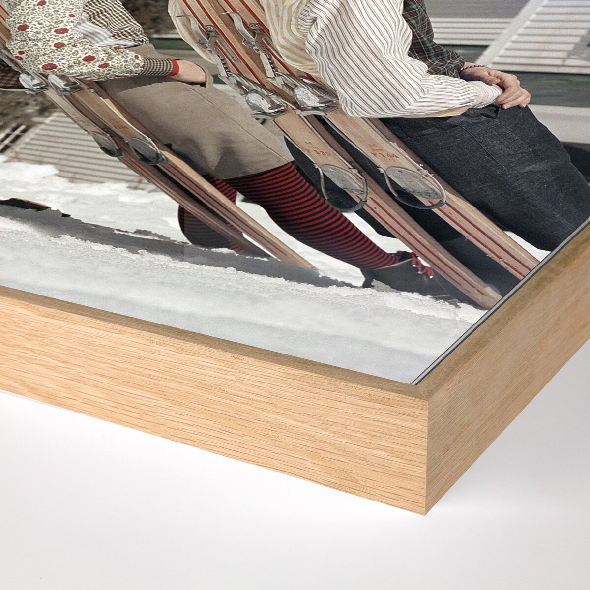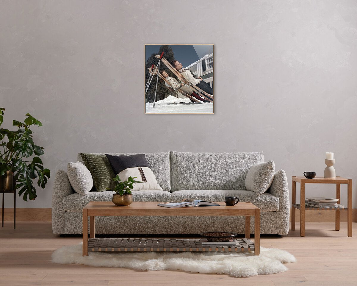 Two women recline on improvised sunbeds at the Cranmore Mountain Resort, North Conway, New Hampshire, 1955. This specially selected work from the late influential photographer Slim Aarons is printed using ultra-modern ChromaLuxe technology for the first time ever. High in definition and gloss, images are printed in vibrant, saturated color on fade- and scratch-resistant recycled aluminum. Each is float-mounted with hand-selected framing designed to complement the print. Handmade in Austin, Texas, each piece includes a certificate of authenticity commemorating the partnership between Slim Aarons, Getty Images Gallery and Four Hands Art Studio. Photo courtesy of Getty Images.