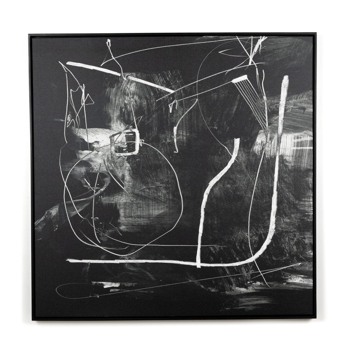 Overall Dimensions 32.00"w x 2.00"d x 32.00"hItem Number 235574-002Colors Black Maple Floater, Matte CanvasMaterials American Maple, Matte CanvasWeight 20.00 lbVolume 3.18 cu ftArtist Dan HobdayMain Color Black & WhiteOrientation SquarePresentation Style Canvas Floater FramedSize MediumSubject AbstractSuite Night
