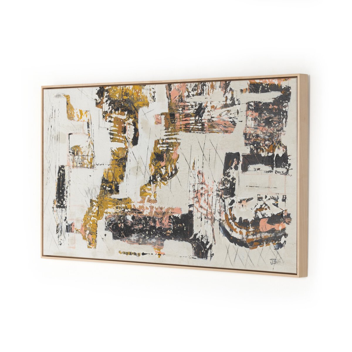 Overall Dimensions 60.00"w x 2.00"d x 30.00"hItem Number 238236-001Colors Natural Maple Floater, Matte CanvasMaterials American Maple, Matte CanvasWeight 35.00 lbVolume 5.26 cu ftArtist Jamie BeckwithMain Color MixedOrientation HorizontalPresentation Style Canvas Floater FramedSize OversizedSubject AbstractSuite Oculus