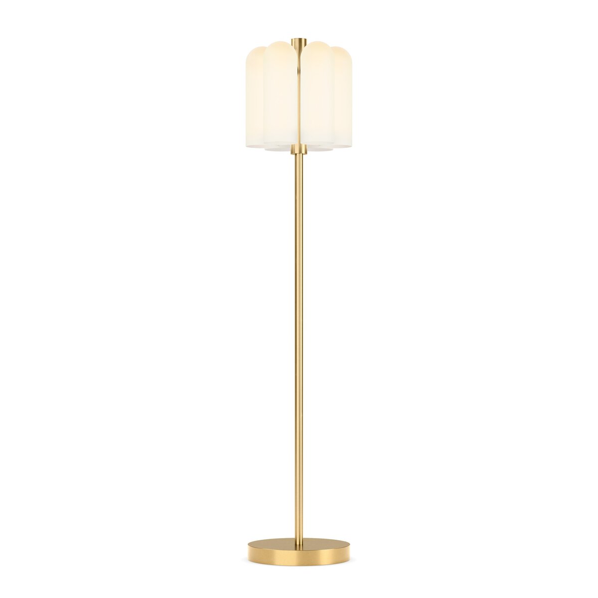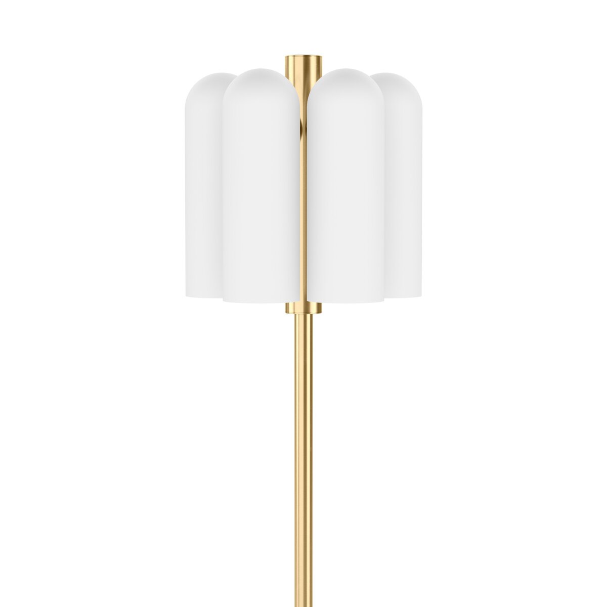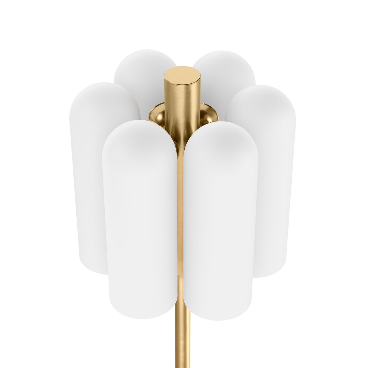 Overall Dimensions 12.25"w x 12.25"d x 61.25"hItem Number 245059-002Colors Burnished Brass, Opal Matte GlassMaterials Brass, GlassWeight 32.80 lbVolume 9.99 cu ftCord Length 118.11"Lamp Base Depth 12.01"Lamp Base Height 1.77"Lamp Base Width 12.01"Lamp Body Depth 12.01"Lamp Body Height 61.22"Lamp Body Width 12.01"Neck Diameter 0.98"Neck Height 45.71"Shade Bottom Diameter 3.94"Shade Height 1 11.81"Shade Top Diameter 1 3.94"Bulb Type LEDBulb(s) Included YesCord Type OtherDimmer Switch Compatible YesMax Wattage 15.00Plug Type PolarizedPlug Type 2-ProngedShade Shape OtherSocket Qty 6.00Socket Type E12: SOCKETSocket Type Type GSuite OdysseySwitch Location CordSwitch Type ON/OFF PUSH BUTTON