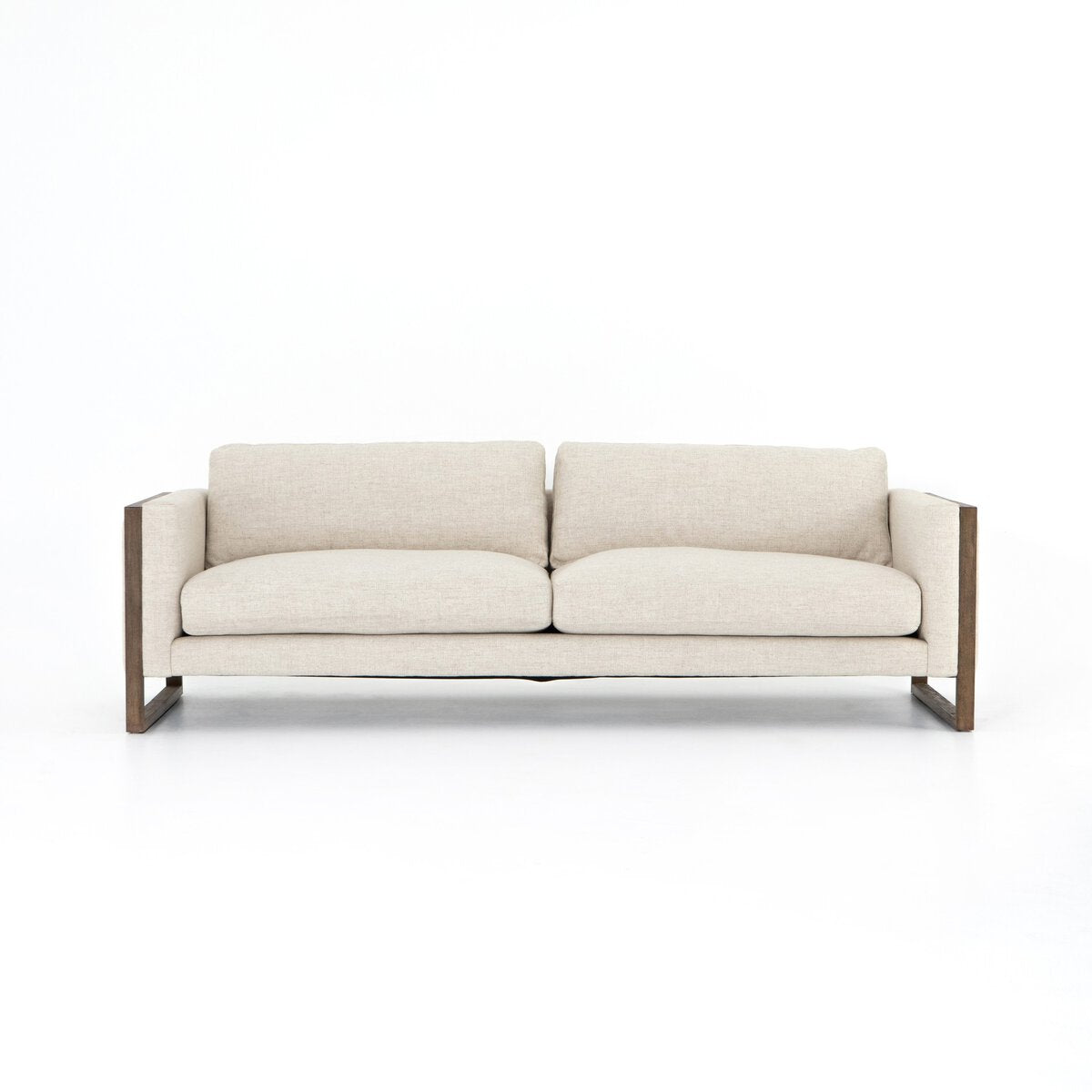 Overall Dimensions 97.00"w x 37.50"d x 32.00"hItem Number CKEN-32271-859PColors Thames Cream, Distressed NaturalMaterials 66% Polyester, 19% Acrylic, 15% Flax/Linen, Solid ParawoodFabric PerformanceWeight 180.78 lbVolume 68.09 cu ftArm Height from Floor 26.50"Arm Height from Seat 7.50"Arm Length 37.00"Arm Width 6.50"Back Cushion Depth 1 6.00"Back Cushion Height 1 15.00"Back Cushion Width 1 42.00"Clearance from Floor 1 7.00"Distance between Legs (Side to Side) 1 92.50"Seat Back Height 7.50"Seat Cushion Depth 1 31.00"Seat Cushion Thickness 1 6.00"Seat Cushion Width 1 41.00"Seat Depth 1 24.00"Seat Height 1 19.00"Seat Width 1 83.50"Back Cushion Attachment LooseBack Cushion Detail BoxedBack Cushion Detail Removable CasingBack Cushion Qty 2.00Chair Arm Option With ArmCleaning Code