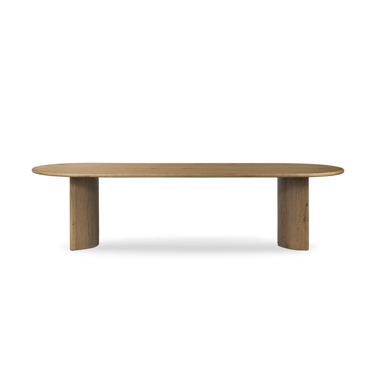 Overall Dimensions 94.00"w x 42.00"d x 30.00"hItem Number 105188-010Colors Worn Oak VeneerMaterials Thick Oak Veneer, Solid OakWeight 139.33 lbVolume 21.75 cu ftClearance from Floor 1 28.58"Distance between Legs (Side to Side) 1 46.02"Leg/Base Depth 1 19.88"Leg/Base Height 1 28.58"Leg/Base Width 1 10.00"Opening for Seating Height 28.58"Overhang Width 1 13.98"Tabletop Thickness 1.42"Weight Capacity 200 lb