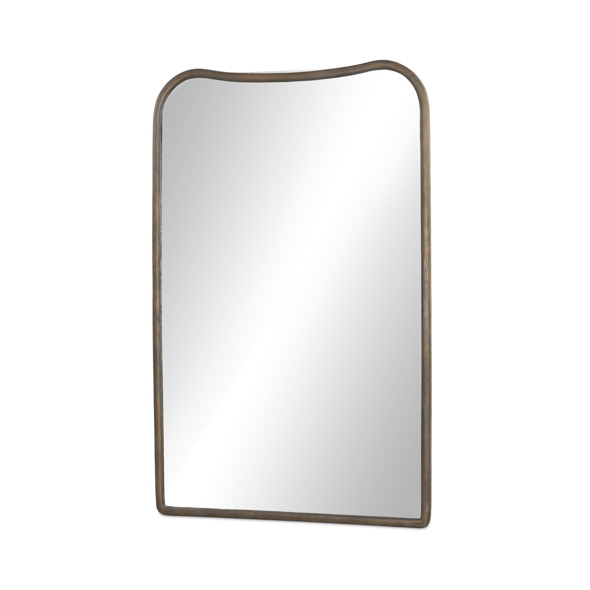 Overall Dimensions 50.00"w x 2.00"d x 81.00"hItem Number 244180-002Colors Antiqued Brass AluminumMaterials Aluminum, MirrorWeight 145.39 lbVolume 20.62 cu ftReflective Area, Height 78.00"Reflective Area, Width 47.00"Anti-Tip Kit Included? YesBathroom Safe NoHanging Direction  cannot be hungHanging Direction Floor onlyShape Type ArchedSuite Patz