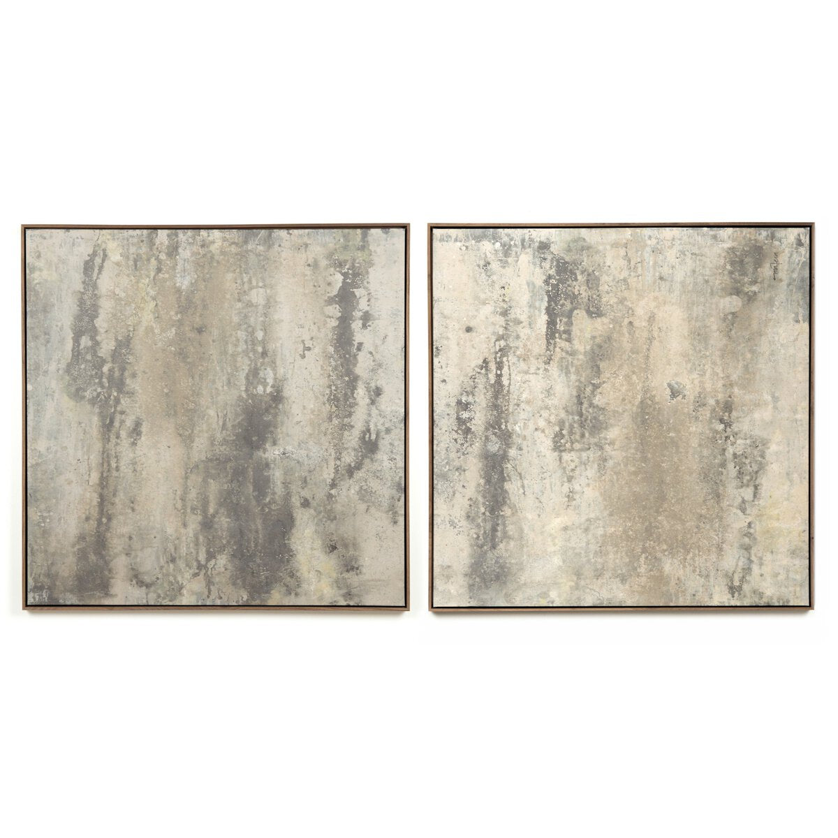 A Mexico City native, Matera is an abstract artist specializing in acrylic and mixed media works. She paints outdoors exclusively, inspired by the changing weather which she uses to guide her intuitive process. This grandly scaled diptych is framed within rustic walnut and handmade in Austin, Texas.