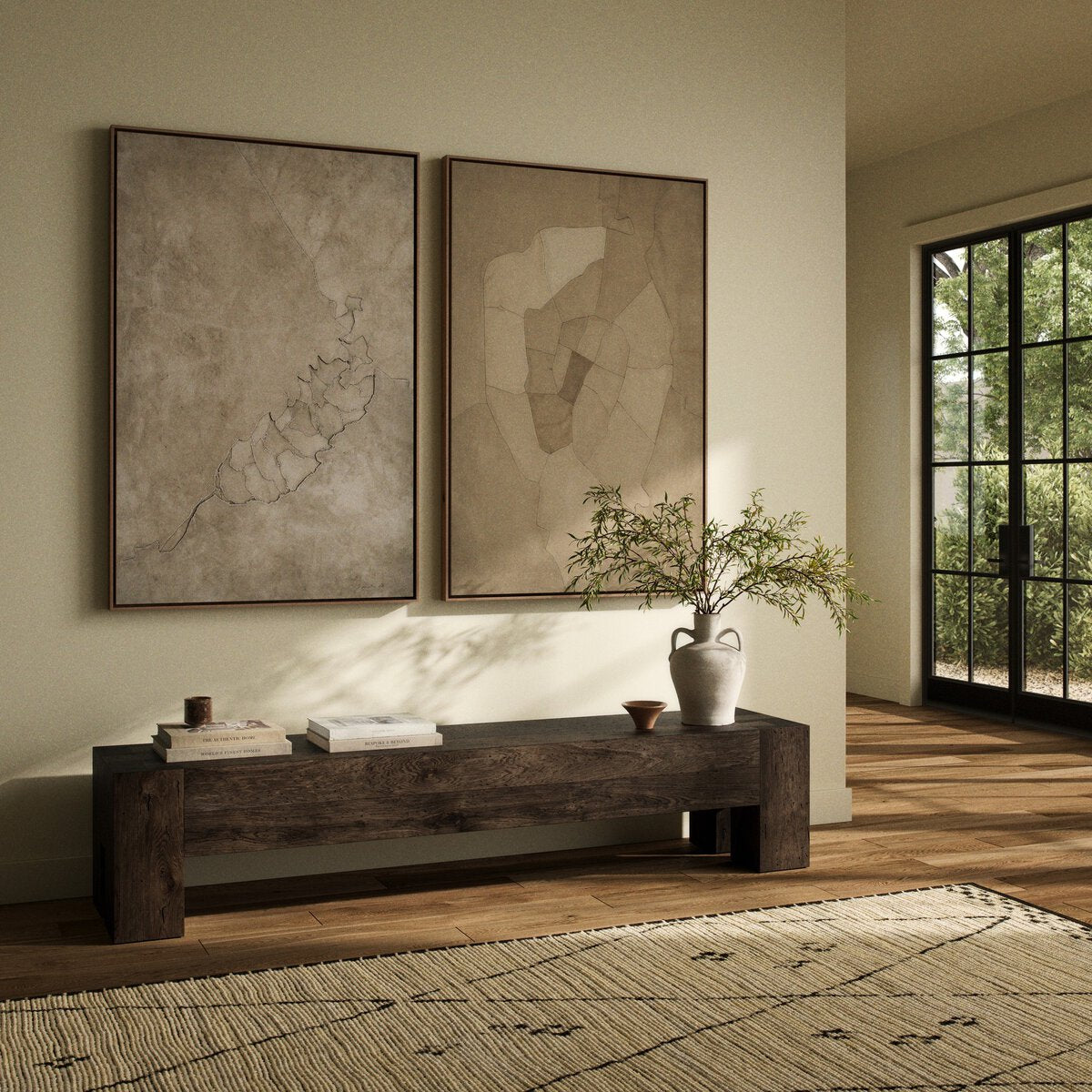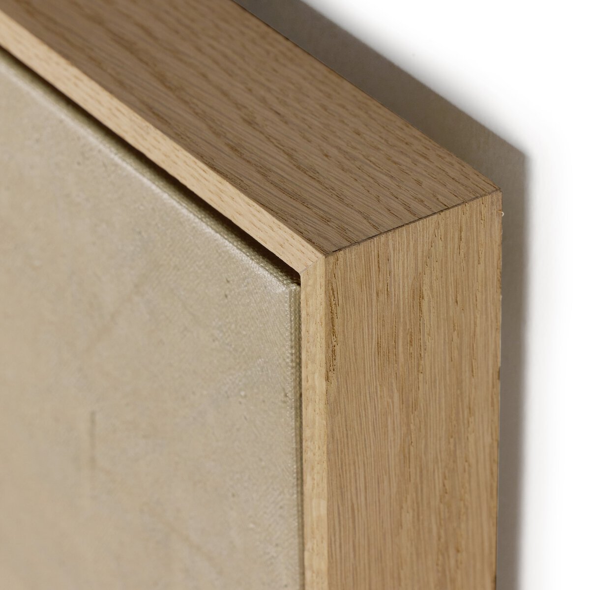 Overall Dimensions 80.00"w x 2.00"d x 60.00"hItem Number 252796-003Colors Vertical Grain White Oak Floater, Matte CanvasMaterials Vertical Grain White Oak Floater, Matte CanvasWeight 70.00 lbVolume 16.95 cu ftArtist Kimmy QuillinMain Color NeutralOrientation Double: Vertical & HorizontalPresentation Style Canvas Floater FramedSize OversizedSubject AbstractSuite Pinecorn