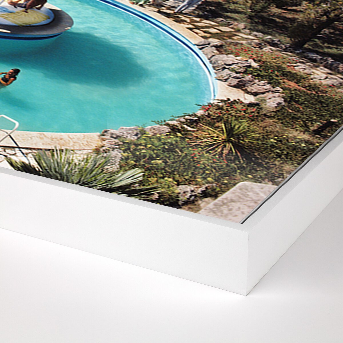 Overall Dimensions 36.00"w x 2.00"d x 24.00"hItem Number 240327-003Colors White Maple Floater, Gloss White MetalMaterials American Maple, Gloss White ChromaluxeWeight 20.00 lbVolume 2.75 cu ftArtist Slim AaronsMain Color MixedOrientation HorizontalPresentation Style Framed MetalSize MediumSubject Portraits & FiguresSuite Pool At Villa Gli Arieti