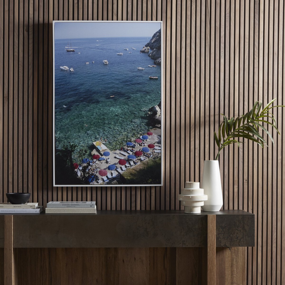 Overall Dimensions 24.00"w x 2.00"d x 36.00"hItem Number 235522-002Colors White Maple FloaterMaterials American MapleWeight 20.00 lbVolume 2.75 cu ftArtist Slim AaronsMain Color MixedOrientation VerticalPresentation Style Framed MetalSize MediumSubject Landscapes & SeascapesSuite Porto Ercole Beach