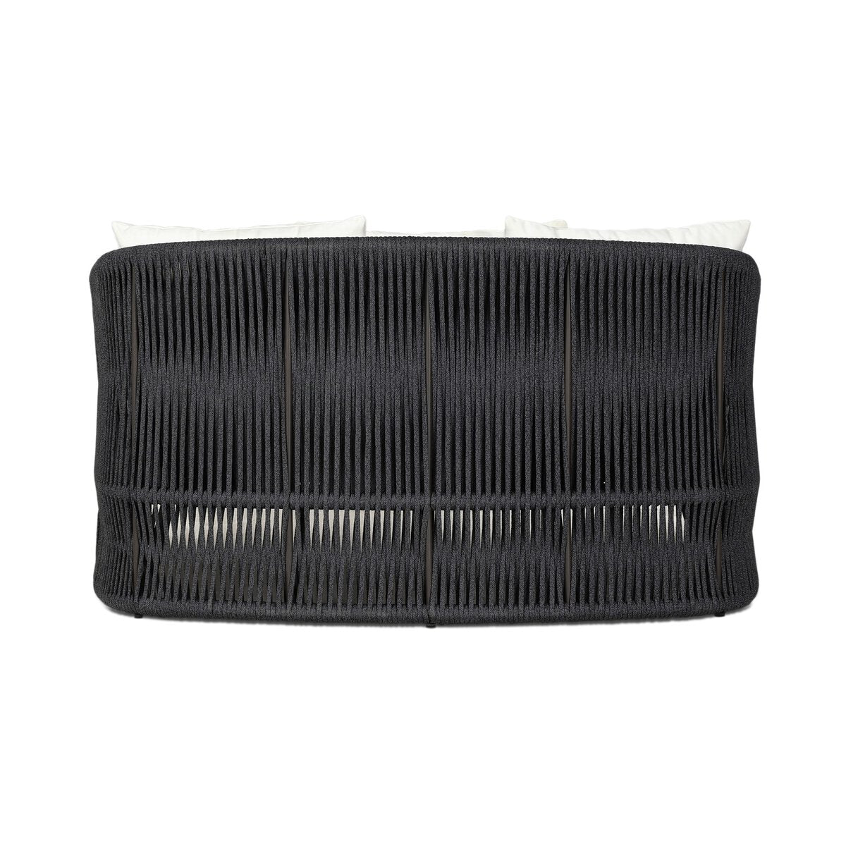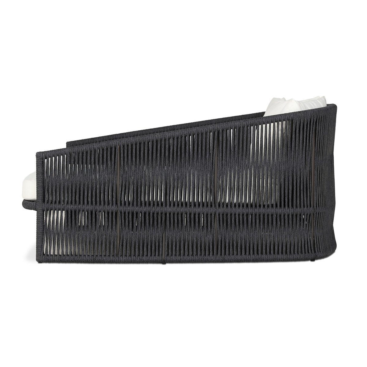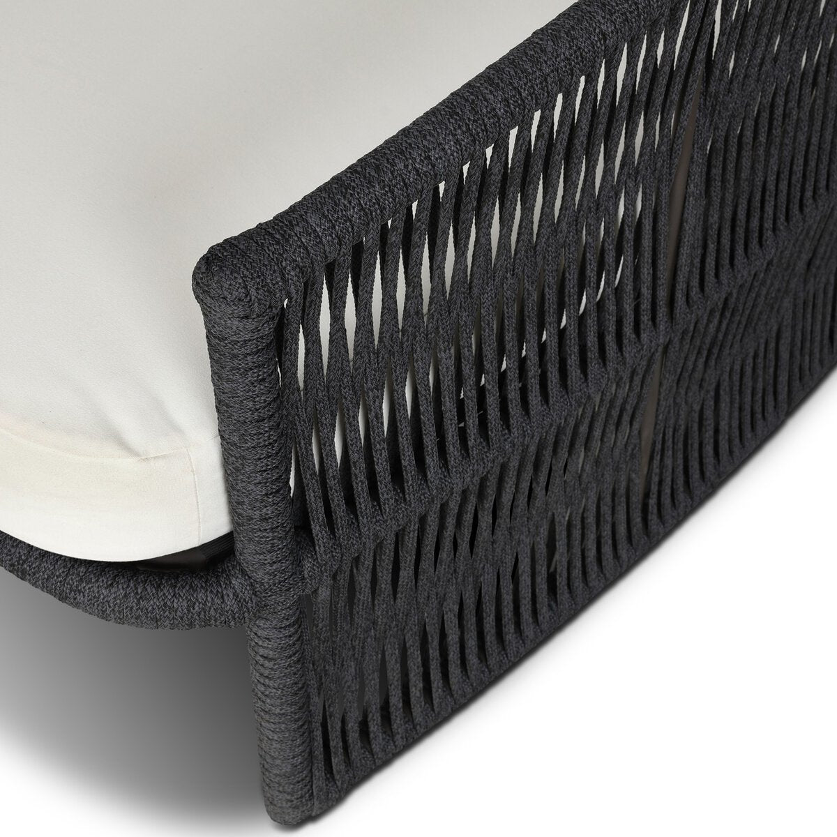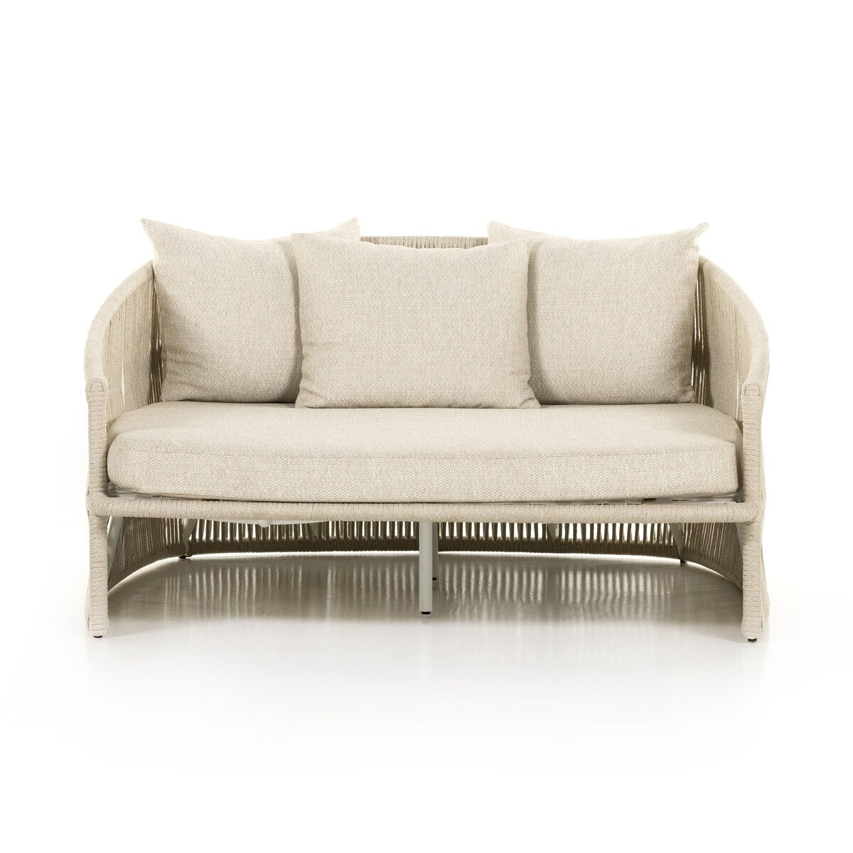 The perfect place for outdoor daydreaming. A beautiful rope-based design is woven across a durable aluminum frame in crisp white. Topped with a wide cushion and throw pillows, all upholstered in 100% olefin, known for its UV-resistant, water-repellent and quick-drying abilities. Cover or store inside during inclement weather and when not in use.