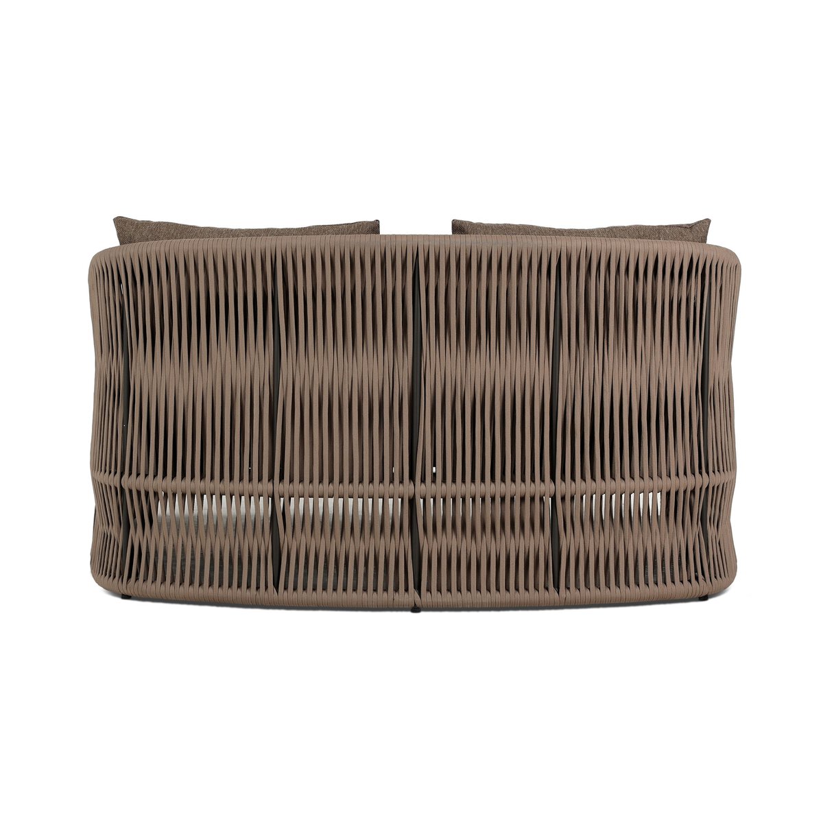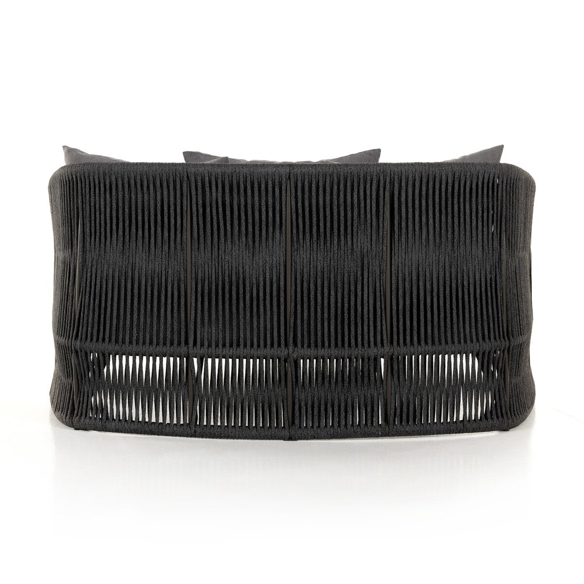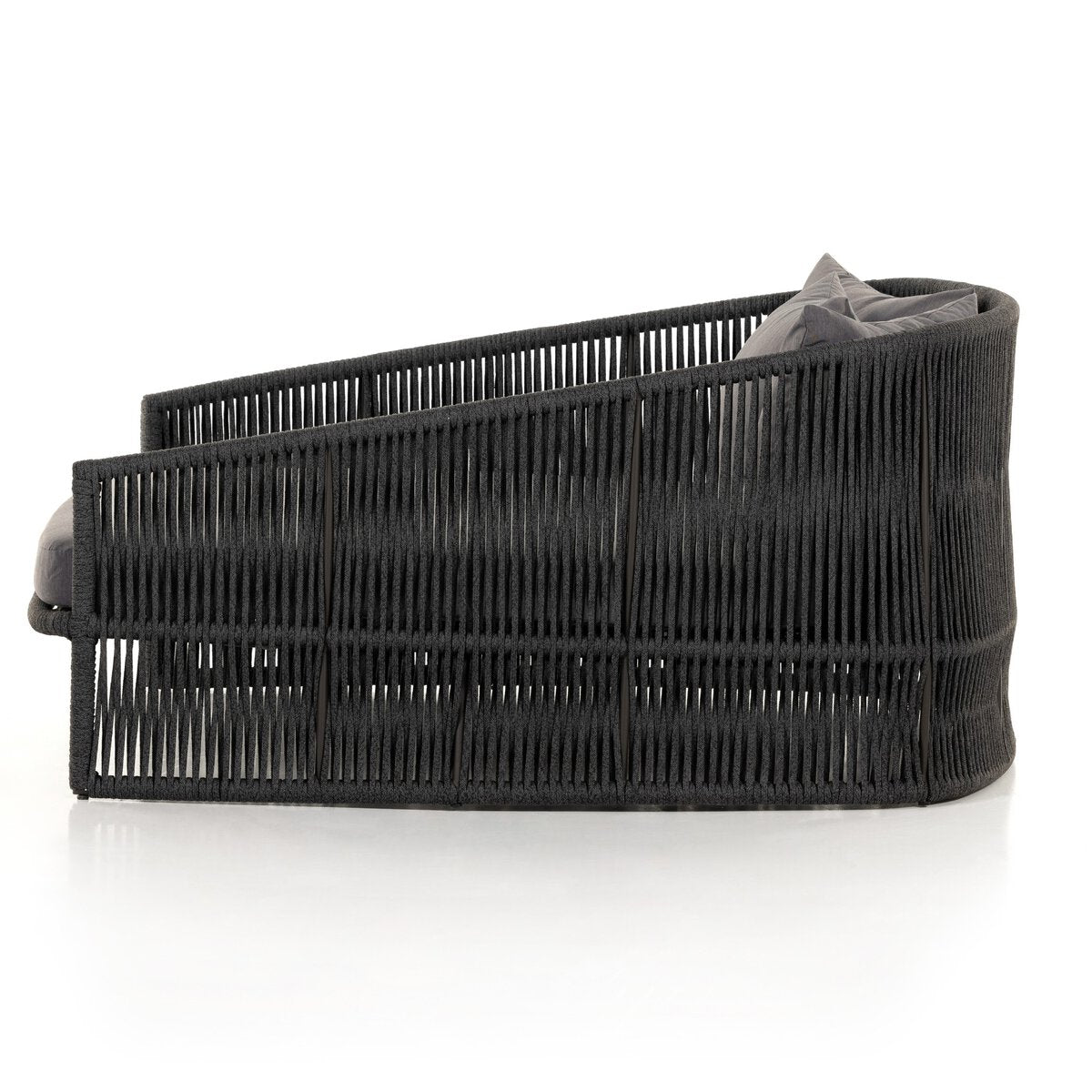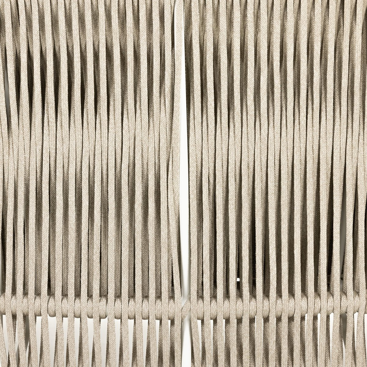The perfect place for outdoor daydreaming. A beautiful rope-based design is woven across a durable aluminum frame in crisp white. Topped with a wide cushion and throw pillows, all upholstered in 100% olefin, known for its UV-resistant, water-repellent and quick-drying abilities. Cover or store inside during inclement weather and when not in use.