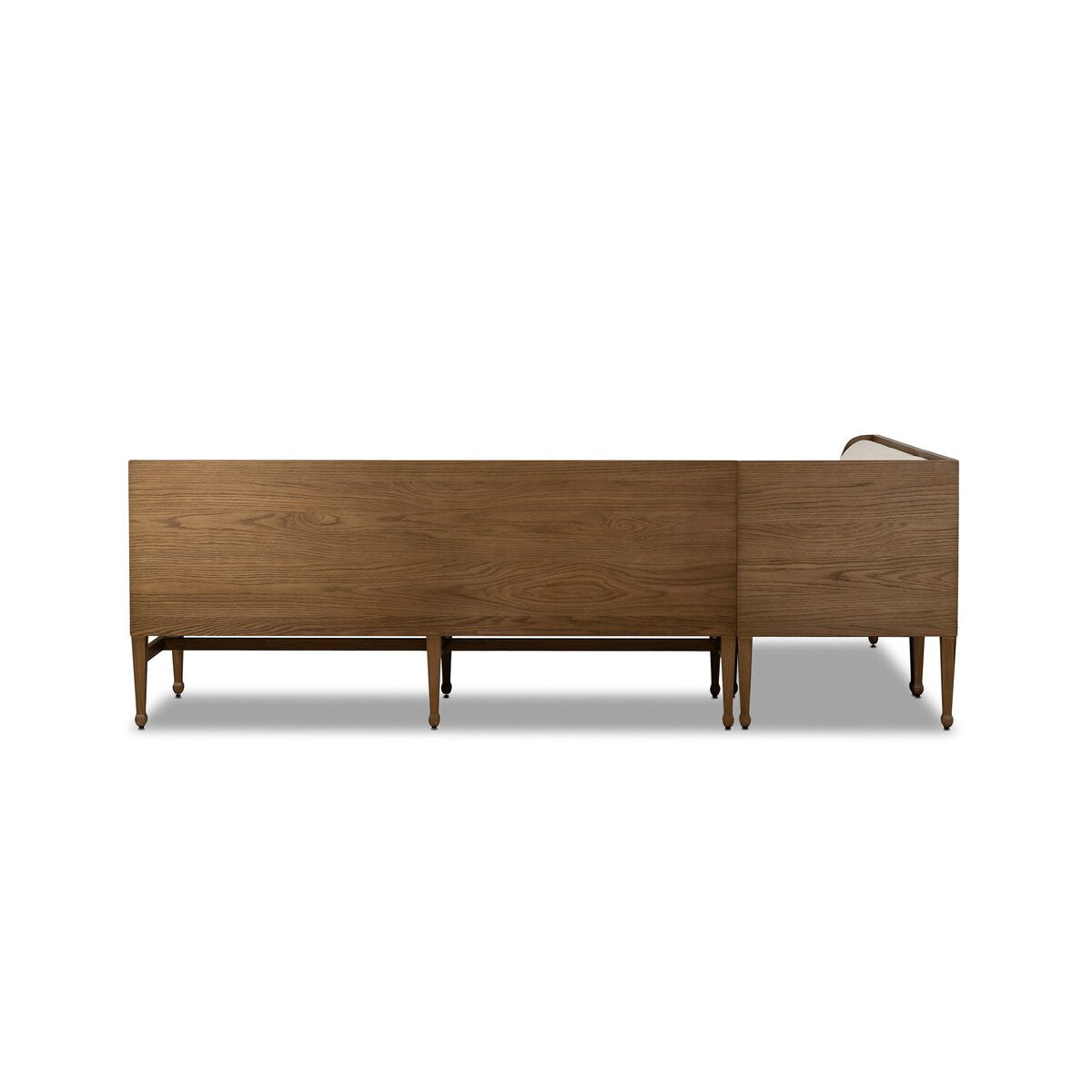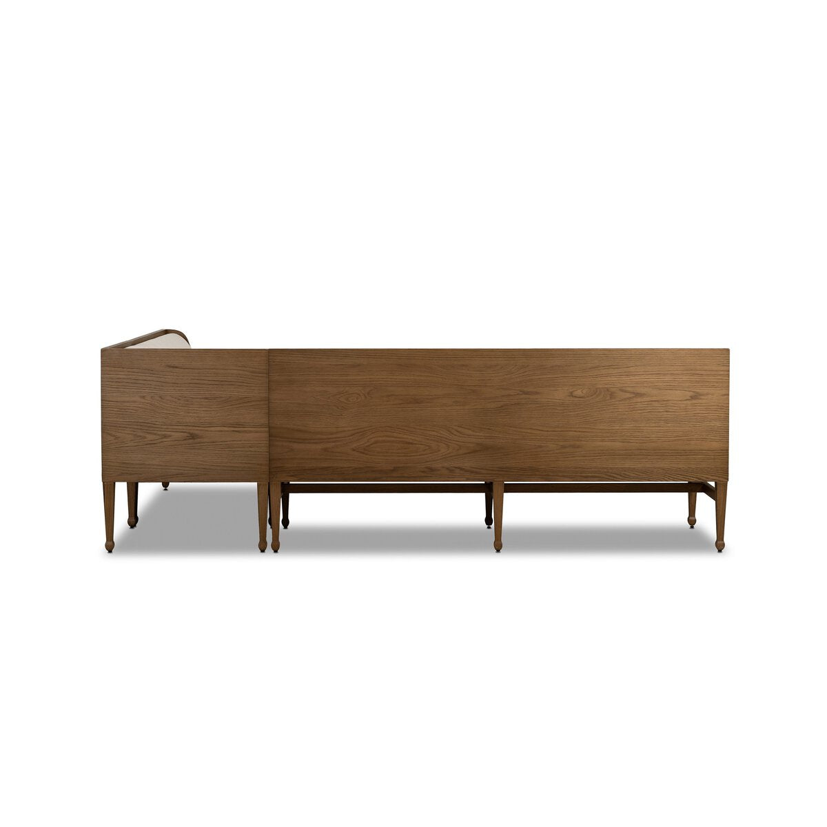 Overall Dimensions 75.00"w x 75.00"d x 32.00"hItem Number 251092-001Colors Crypton Wayfarer Snow, Warm Oak, Warm Oak VeneerMaterials 100% Polyester, Solid Oak, Oak VeneerFabric PerformanceWeight 160.93 lbVolume 74.51 cu ftCleaning Code