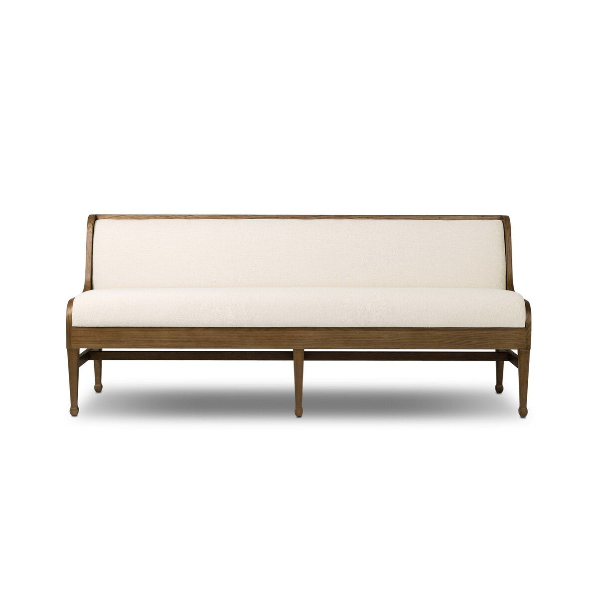 Overall Dimensions 74.00"w x 26.50"d x 32.00"hItem Number 244079-001Colors Crypton Wayfarer Snow, Warm Oak, Warm Oak VeneerMaterials 100% Polyester, Solid Oak, Oak VeneerFabric PerformanceWeight 87.52 lbVolume 40.19 cu ftClearance from Floor 1 7.50"Distance between Legs (Front to Back) 1 22.75"Distance between Legs (Side to Side) 1 34.50"Seat Back Height 12.00"Seat Depth 1 18.75"Seat Height 1 20.00"Seat Width 1 72.00"Chair Arm Option ArmlessCleaning Code