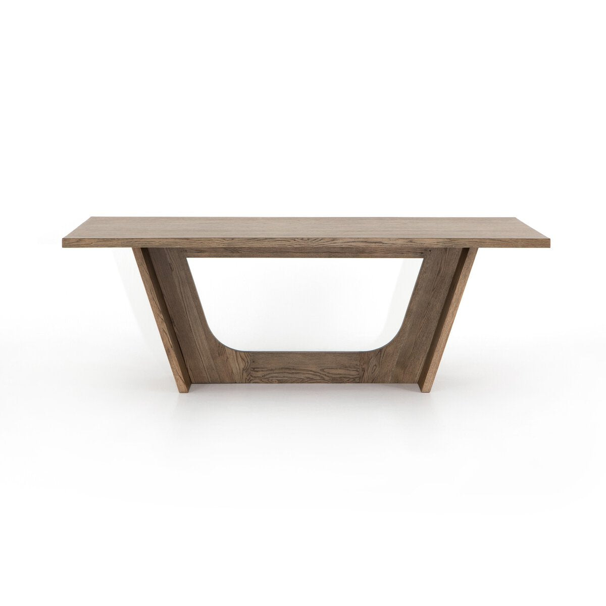 Overall Dimensions 87.00"w x 43.00"d x 30.25"hItem Number VPTN-170Colors Smoked Grey, Smoked Grey OakMaterials Thick Oak Veneer, Solid OakWeight 166.45 lbVolume 31.92 cu ftApron Height 4.13"Clearance from Floor 1 28.54"Distance between Legs (Side to Side) 1 43.66"Leg/Base Depth 1 19.61"Leg/Base Height 1 28.54"Leg/Base Width 1 65.04"Opening for Seating Height 28.54"Overhang Width 1 20.02"Tabletop Thickness 1.65"Drawer Glide Type NoneDrawer Stop Material NoneFrame Construction Joinery Frame and Panel ConstructionFunctionality NoneHas Leveler YesProtective Feet Leg LevelersSeating Capacity 6.00Shape Type RectangleSuite PryorTable Type TrestleWeight Capacity 200 lb