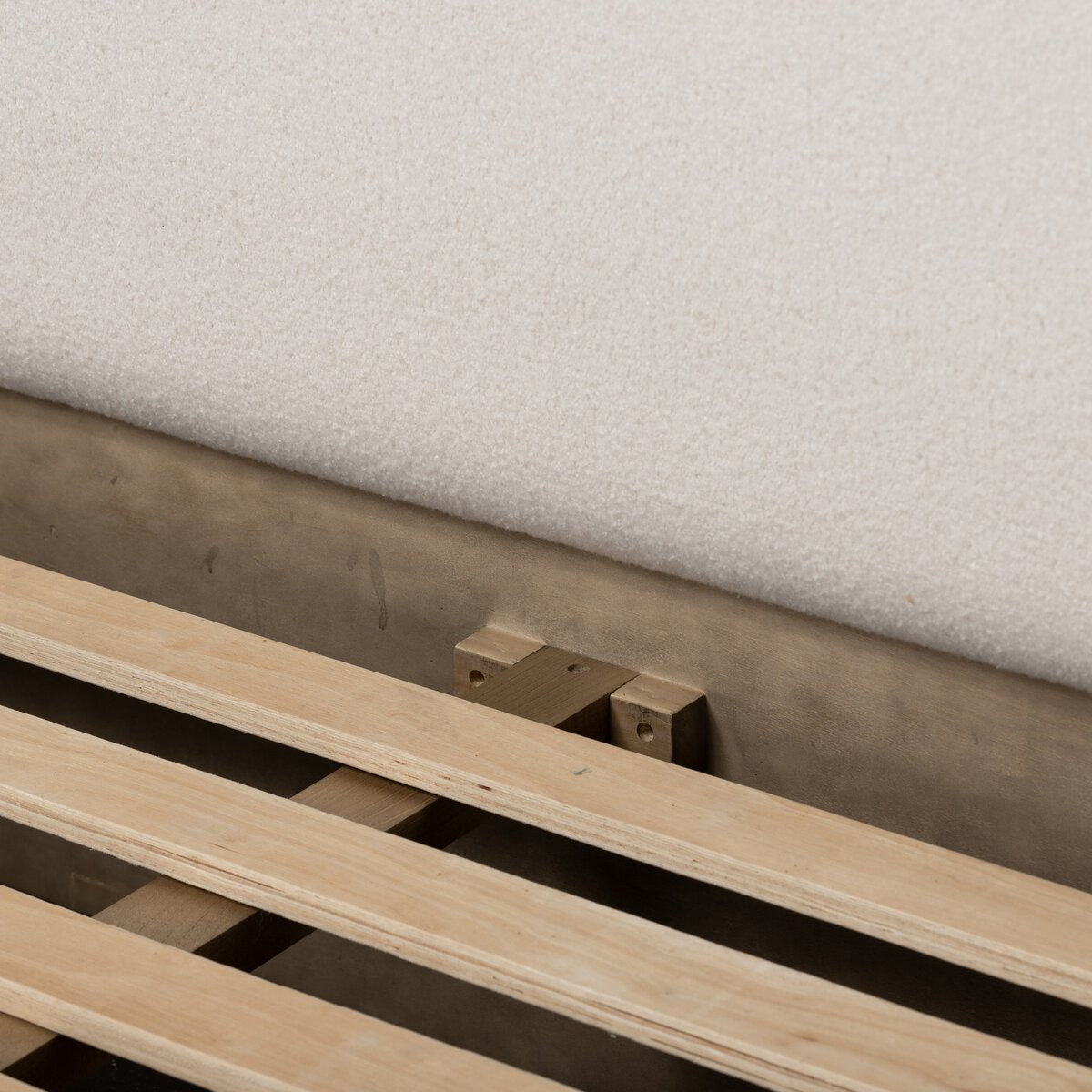 Overall Dimensions 134.50"w x 86.50"d x 55.00"hItem Number 241059-002Colors Crete Ivory, Rustic Fawn, Rustic Fawn VeneerMaterials 100% Post Consumer Recycled Polypropylene, Solid Oak, Resawn Oak VeneerWeight 343.92 lbVolume 58.83 cu ftDistance between Slats 2.76"Floor to Top of Slat Height 11.02"Footboard Height 12.99"Footboard Thickness 2.01"Footboard Width 81.02"Headboard Height 55.00"Headboard Thickness 3.94"Headboard Width 134.49"Interior Dimension for Mattress Depth 80.51"Interior Dimension for Mattress Height 1.97"Interior Dimension for Mattress Width 77.01"Interior Frame Depth (Without Slats and Center Rail) 78.15"Interior Frame Width (Without Slats and Center Rail) 74.65"Side Rails Height 12.99"Side Rails Length 83.46"Side Rails Thickness 2.01"Adjustable Bed Frame Compatible YesBed Backing Sealant/Stain (Can’t be floated)Bed Material UpholsteredBox Spring Required Not RequiredCleaning Code