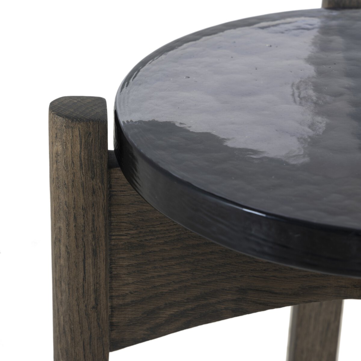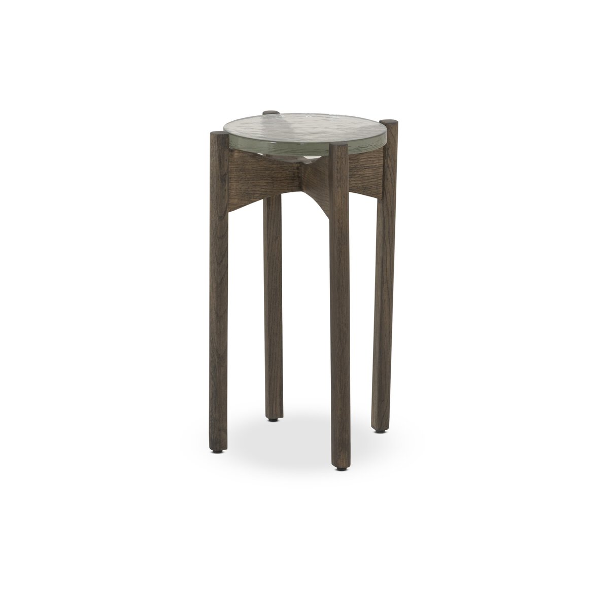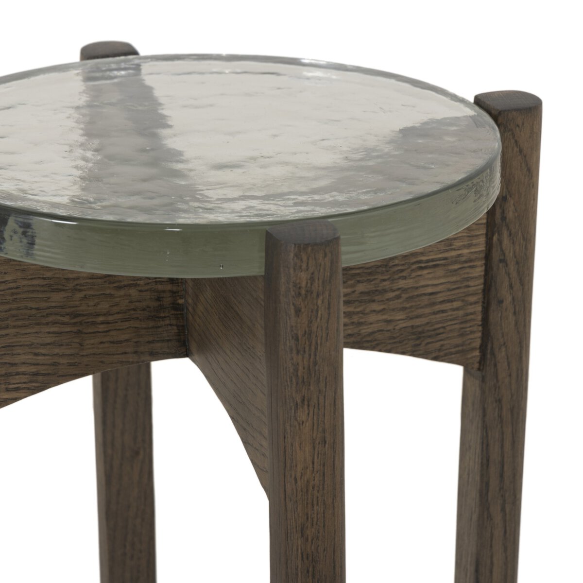 Overall Dimensions 12.00"w x 12.00"d x 19.50"hItem Number 249440-002Colors Clear Cast Glass, Light Tobacco OakMaterials Cast Glass, Solid OakWeight 8.49 lbVolume 4.48 cu ftClearance from Floor 1 14.50"Distance between Legs (Front to Back) 1 10.00"Distance between Legs (Side to Side) 1 10.00"Leg/Base Depth 1 1.00"Leg/Base Height 1 19.50"Leg/Base Width 1 1.00"Tabletop Thickness 0.75"Drawer Glide Type NoneDrawer Stop Material NoneFrame Construction Joinery Mortise and TenonShape Type RoundSuite ReloWeight Capacity 100 lb