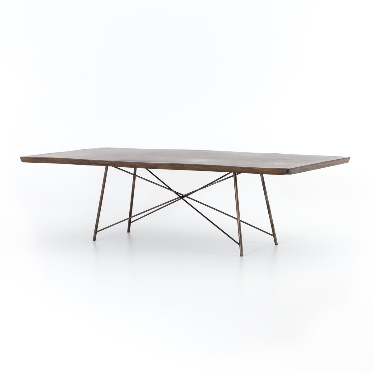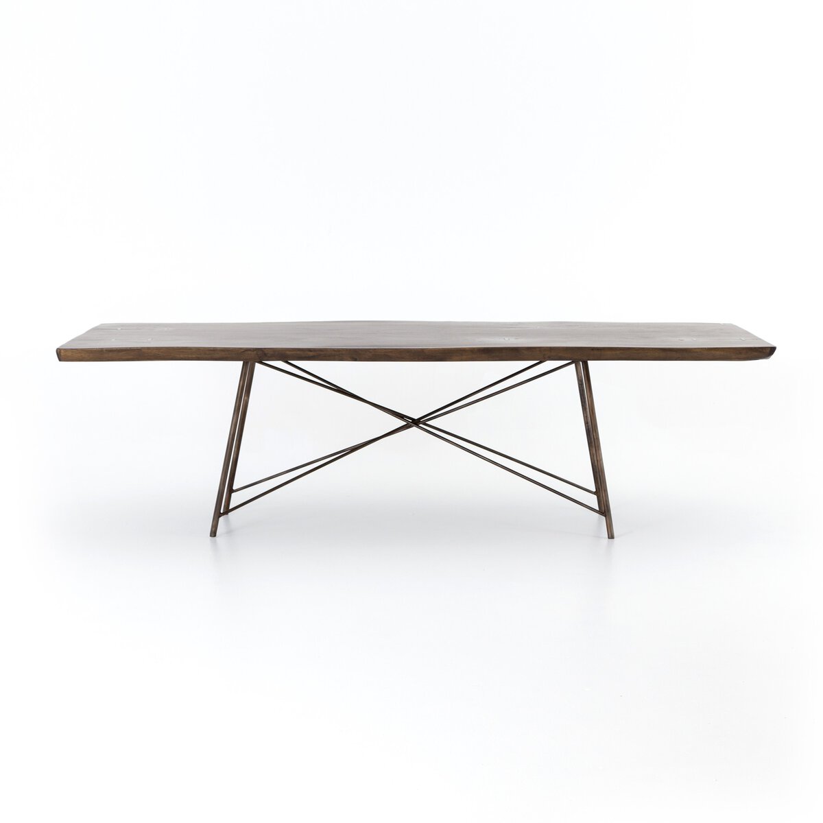 Overall Dimensions 101.00"w x 44.25"d x 30.00"hItem Number UWES-142Colors Smoked Saman, Bronzed IronMaterials Thick Saman Veneer, IronWeight 119.00 lbVolume 43.79 cu ftClearance from Floor 1 15.00"Distance between Legs (Front to Back) 1 19.00"Distance between Legs (Side to Side) 1 58.50"Leg/Base Depth 1 20.50"Leg/Base Height 1 28.25"Leg/Base Width 1 60.00"Opening for Seating Height 28.25"Overhang Width 1 20.50"Tabletop Thickness 1.75"Drawer Glide Type NoneDrawer Stop Material NoneFrame Construction Joinery Edge Banded VeneerFunctionality NoneHas Leveler YesProtective Feet Leg LevelersSeating Capacity 12.00Shape Type RectangleSuite RockyTable Type TrestleWeight Capacity 200 lb