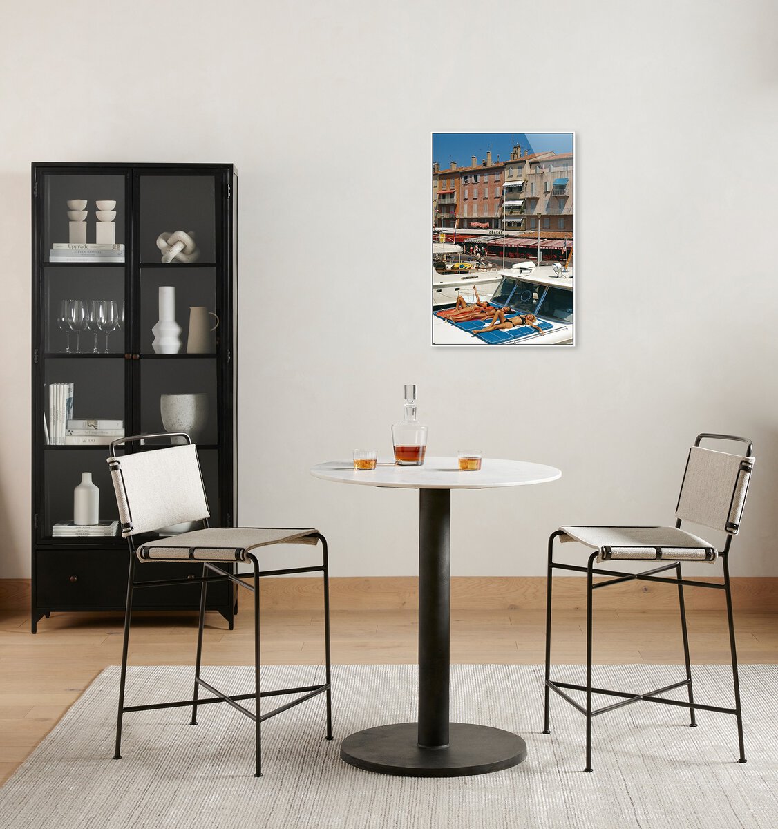Overall Dimensions 24.00"w x 2.00"d x 36.00"hItem Number 237845-003Colors White Maple Floater, Gloss White MetalMaterials American Maple, Gloss White ChromaluxeWeight 20.00 lbVolume 2.75 cu ftArtist Slim AaronsMain Color MixedOrientation VerticalPresentation Style Framed MetalSize MediumSubject ArchitecturalSuite Saint-Tropez