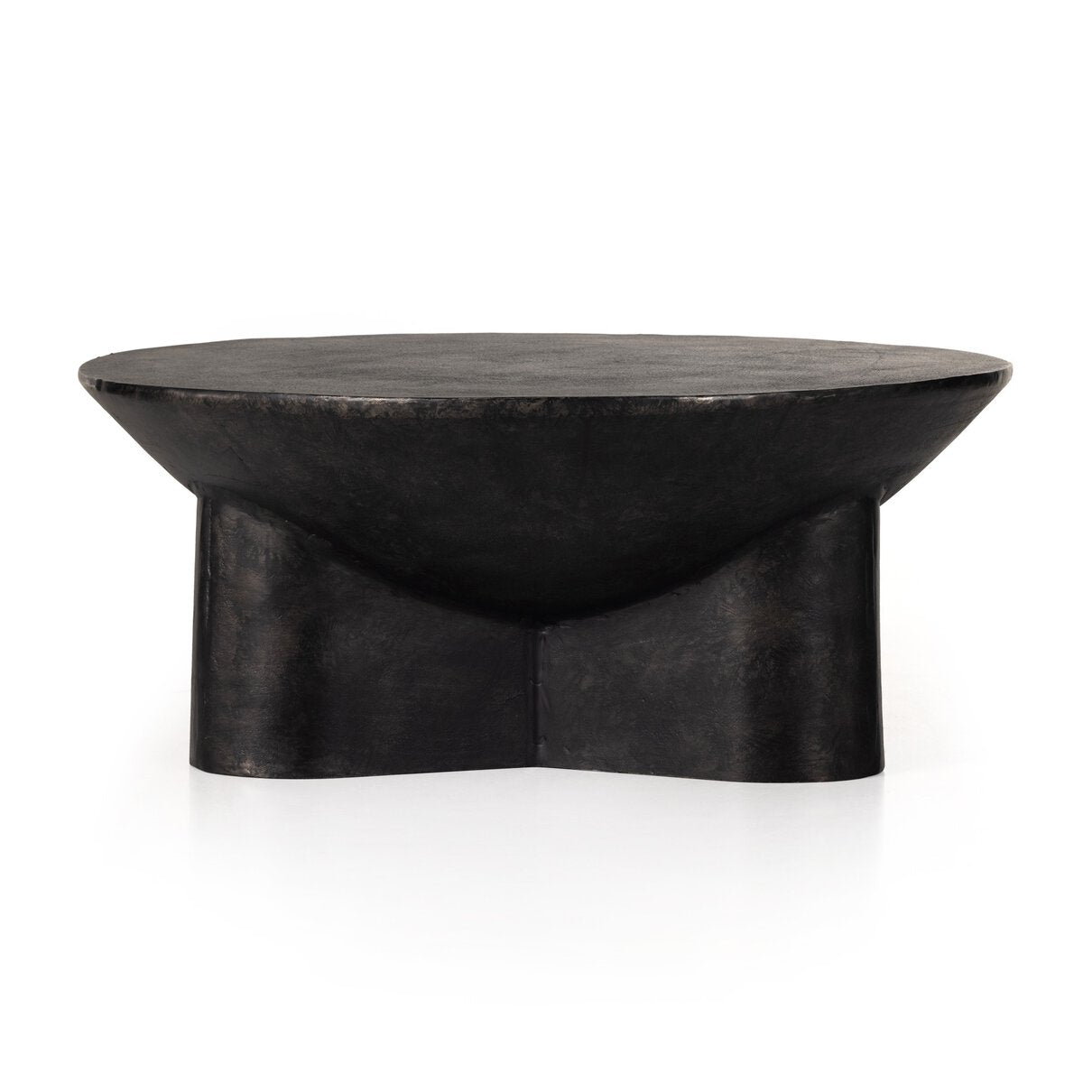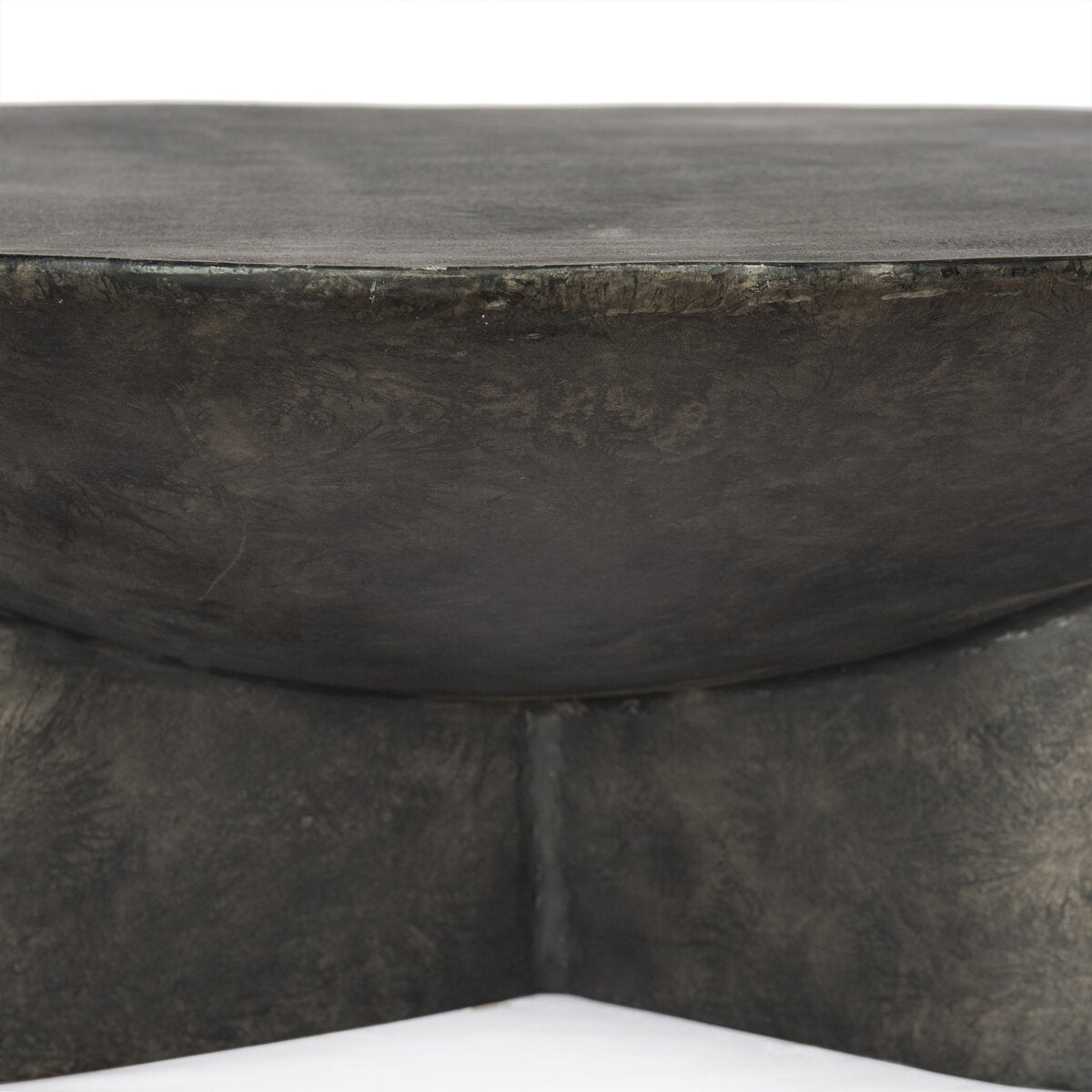 Overall Dimensions 36.00"w x 36.00"d x 15.25"hItem Number 235674-001Colors Raw BlackMaterials AluminumWeight 78.66 lbVolume 17.59 cu ftClearance from Floor 1 5.00"Distance between Legs (Front to Back) 1 19.50"Distance between Legs (Side to Side) 1 25.25"Leg/Base Depth 1 19.75"Leg/Base Height 1 11.00"Leg/Base Width 1 25.50"Overhang Width 1 5.25"Tabletop Thickness 0.25"Drawer Glide Type NoneDrawer Stop Material NoneFunctionality NoneShape Type RoundSuite SanteWeight Capacity 100 lb