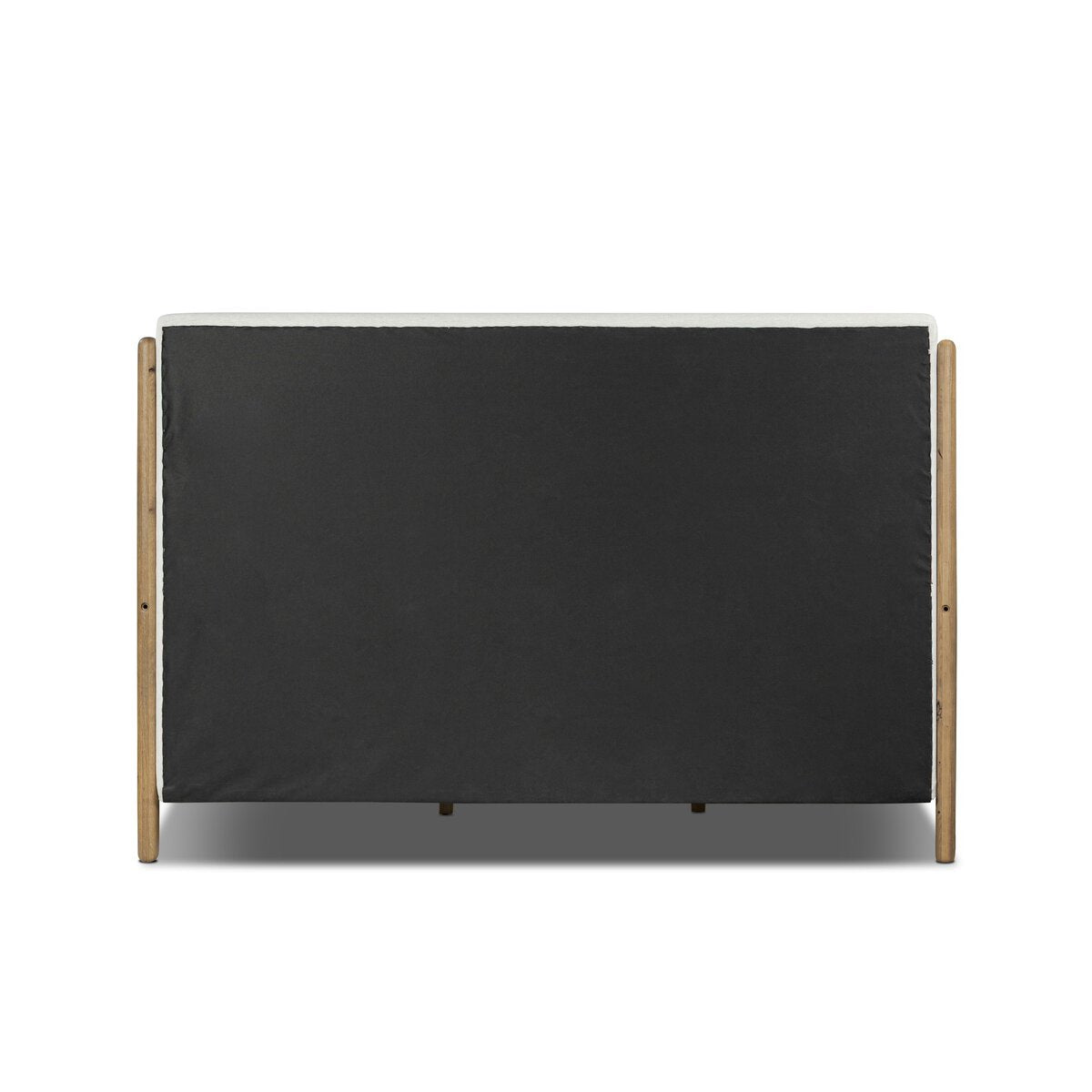 Overall Dimensions 81.00"w x 89.75"d x 54.25"hItem Number 249199-002Colors Crypton Nomad Snow, Worn OakMaterials 92% Polyester, 8% Flax/Linen, Solid OakFabric PerformanceWeight 268.96 lbVolume 58.66 cu ftClearance from Footboard 6.02"Clearance from Headboard 6.02"Clearance from Side Rails 6.93"Distance between Slats 3.15"Floor to Top of Slat Height 13.98"Footboard Height 24.02"Footboard Thickness 3.98"Footboard Width 80.94"Headboard Height 54.33"Headboard Thickness 5.98"Headboard Width 80.94"Interior Dimension for Mattress Depth 80.51"Interior Dimension for Mattress Height 1.97"Interior Dimension for Mattress Width 77.01"Interior Frame Depth (Without Slats and Center Rail) 80.31"Interior Frame Width (Without Slats and Center Rail) 75.04"Side Rails Height 12.60"Side Rails Length 82.52"Side Rails Thickness 1.97"Adjustable Bed Frame Compatible YesBed Backing Dark FabricBed Material UpholsteredBox Spring Required Not RequiredCleaning Code