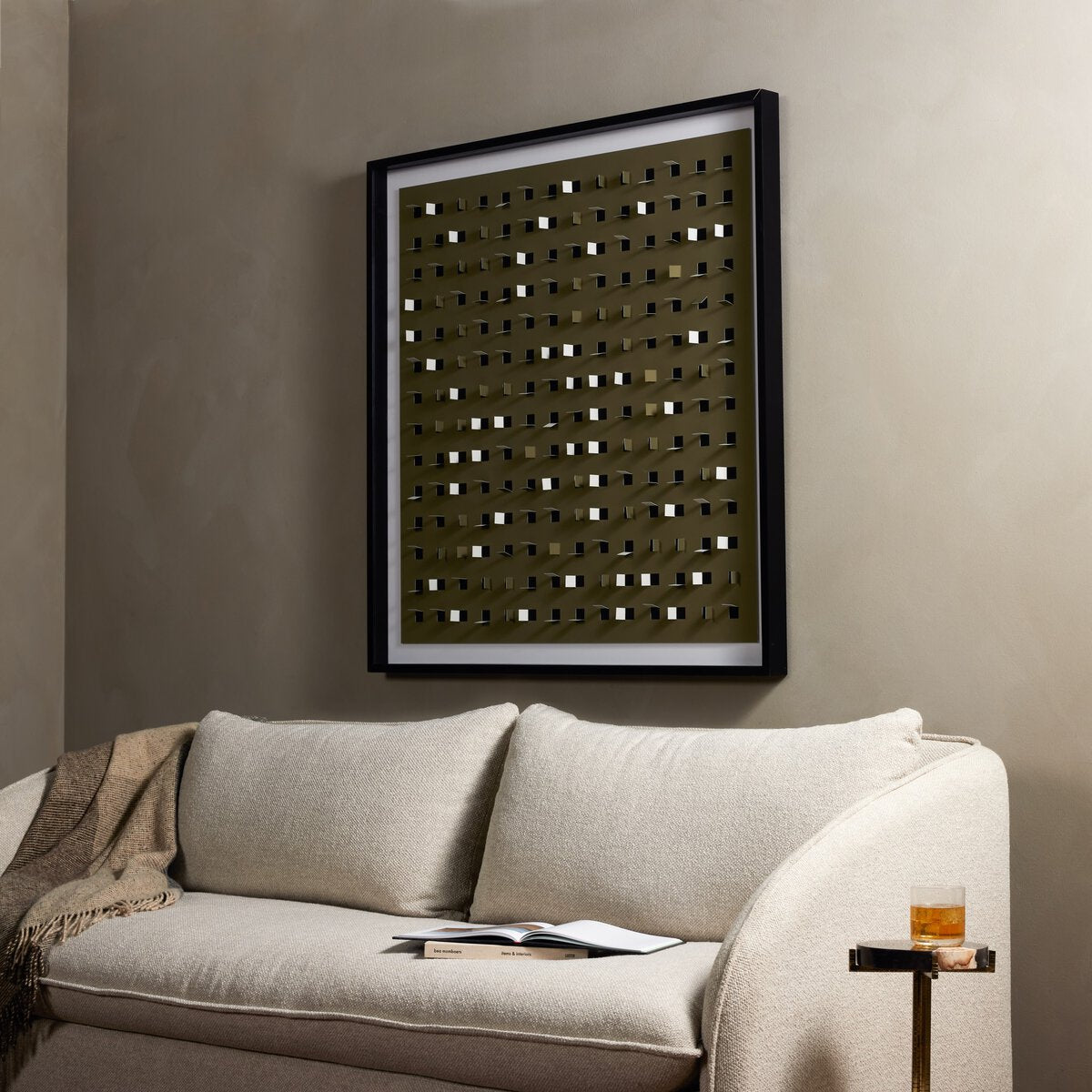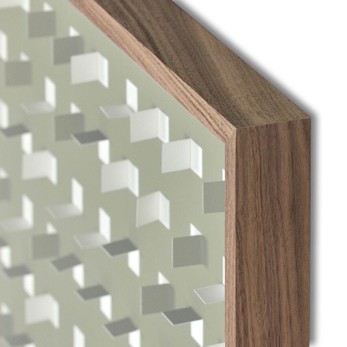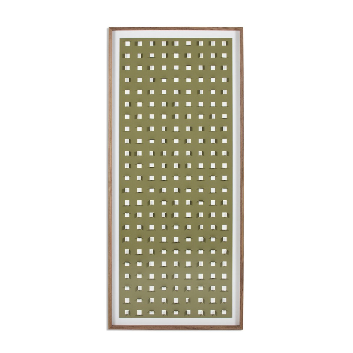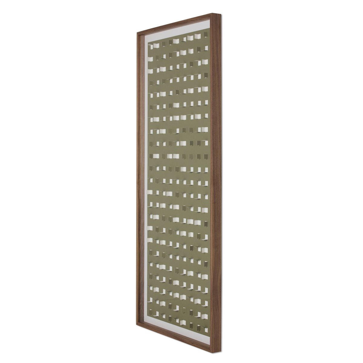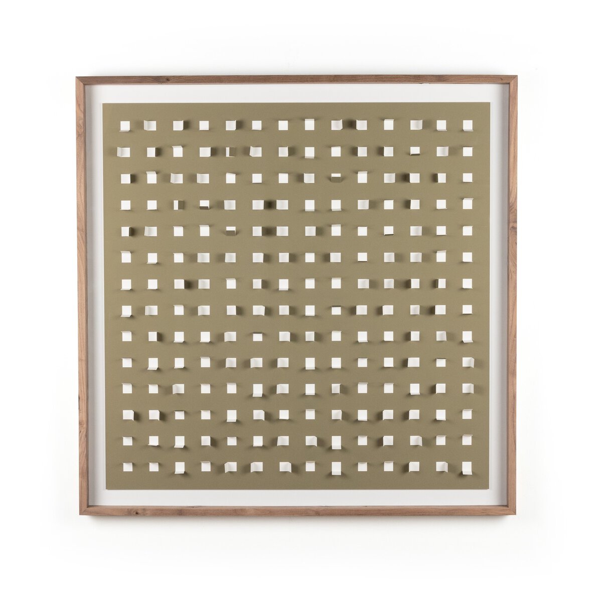 Overall Dimensions 48.00"w x 2.50"d x 48.00"hItem Number 237506-001Colors Rustic 2.5 Walnut, White Backer, Clear Acrylic GlazingMaterials Walnut, Linen Backer, Acrylic GlazingWeight 25.00 lbVolume 8.12 cu ftArtist Four Hands Art StudioMain Color GreenOrientation SquarePresentation Style Framed Cut OutsSize Extra LargeSubject AbstractSuite See Through