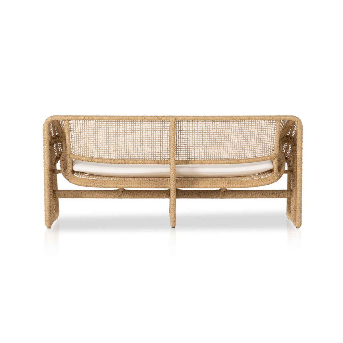 Great texture for the great outdoors in a sofa silhouette. Woven all-weather wicker forms a light, hyacinth-like frame for a durable seat cushion, spurring a grand, shapely look and feel. Cover or store indoors during inclement weather and when not in use.