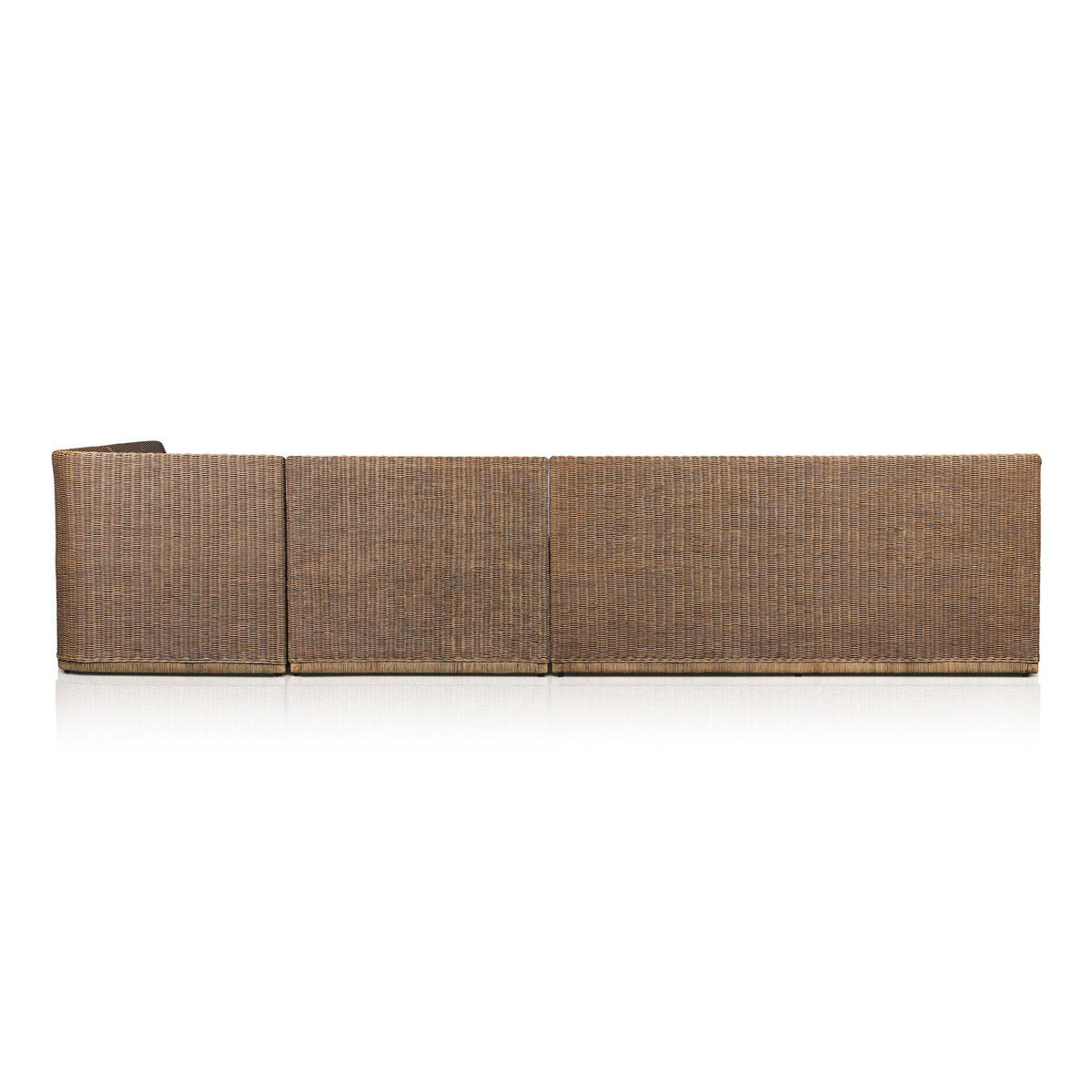 Overall Dimensions 106.25"w x 83.25"d x 32.50"hItem Number 246762-001Colors Broadway Dune, Natural Brown RattanMaterials 100% Flax/Linen, RattanWeight 197.98 lbVolume 140.91 cu ftChair Arm Option With ArmCleaning Code