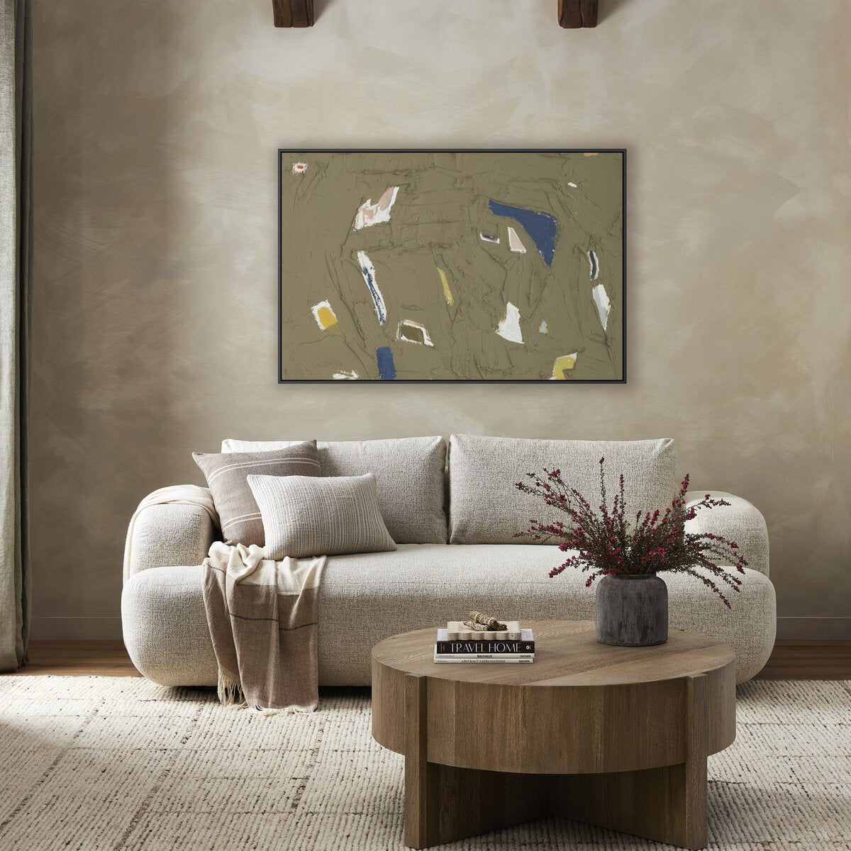 Overall Dimensions 32.00"w x 2.00"d x 22.00"hItem Number 253087-005Colors Natural Maple Floater, Matte CanvasMaterials American Maple, Matte CanvasWeight 20.00 lbVolume 2.90 cu ftArtist Allison RohlandMain Color MixedOrientation Double: Vertical & HorizontalPresentation Style Canvas Floater FramedSize MediumSubject AbstractSuite She's Electric
