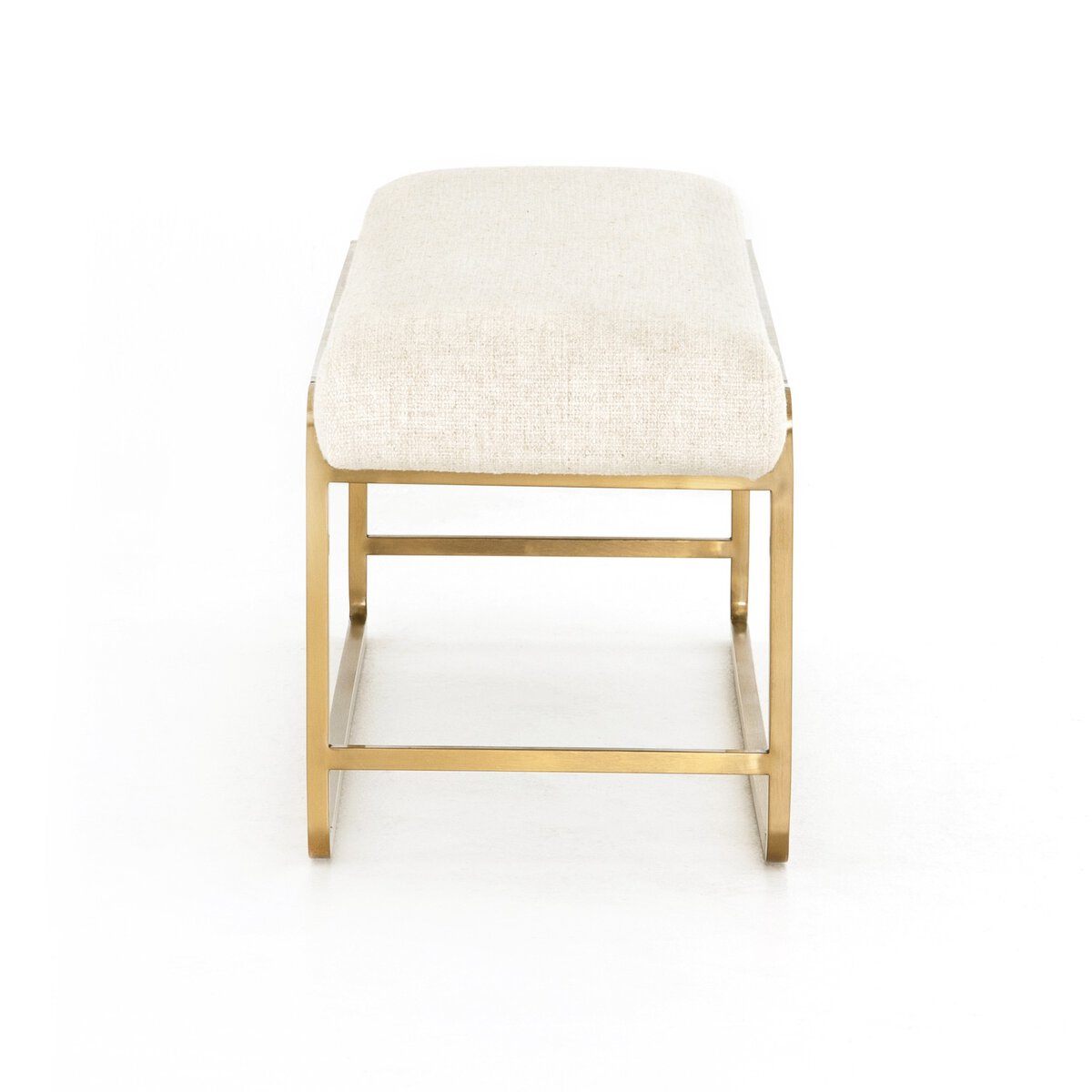 Overall Dimensions 60.00"w x 16.00"d x 18.50"hItem Number 106280-005Colors Thames Cream, Polished BrassMaterials 66% Polyester, 19% Acrylic, 15% Flax/Linen, Stainless SteelFabric PerformanceWeight 36.60 lbVolume 13.84 cu ftClearance from Floor 1 0.00"Distance between Legs (Front to Back) 1 14.50"Distance between Legs (Side to Side) 1 0.00"Seat Depth 1 14.50"Seat Height 1 18.50"Seat Width 1 60.00"Chair Arm Option ArmlessCleaning Code