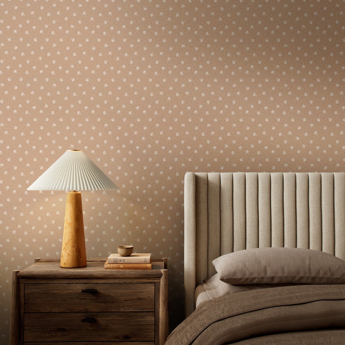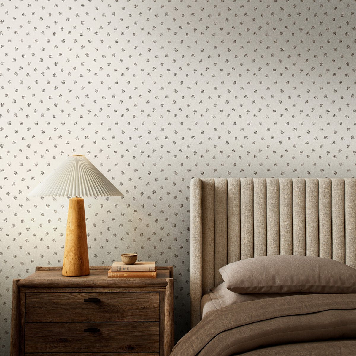 Overall Dimensions 12.00"w x 0.00"d x 8.00"hItem Number 247813-022Colors Small Floral Tan IIMaterials TerralonWeight 0.50 lbVolume 0.04 cu ftArtist Gold Rush Art Co.Bathroom Safe YesOrientation HorizontalPattern Repeat (in) 13.00Presentation Style WallcoveringSize 12"x8"Square Footage per Unit 0.67Subject BotanicalSuite Small FloralWallpaper Application Type Non-PastedWallpaper Type Pattern