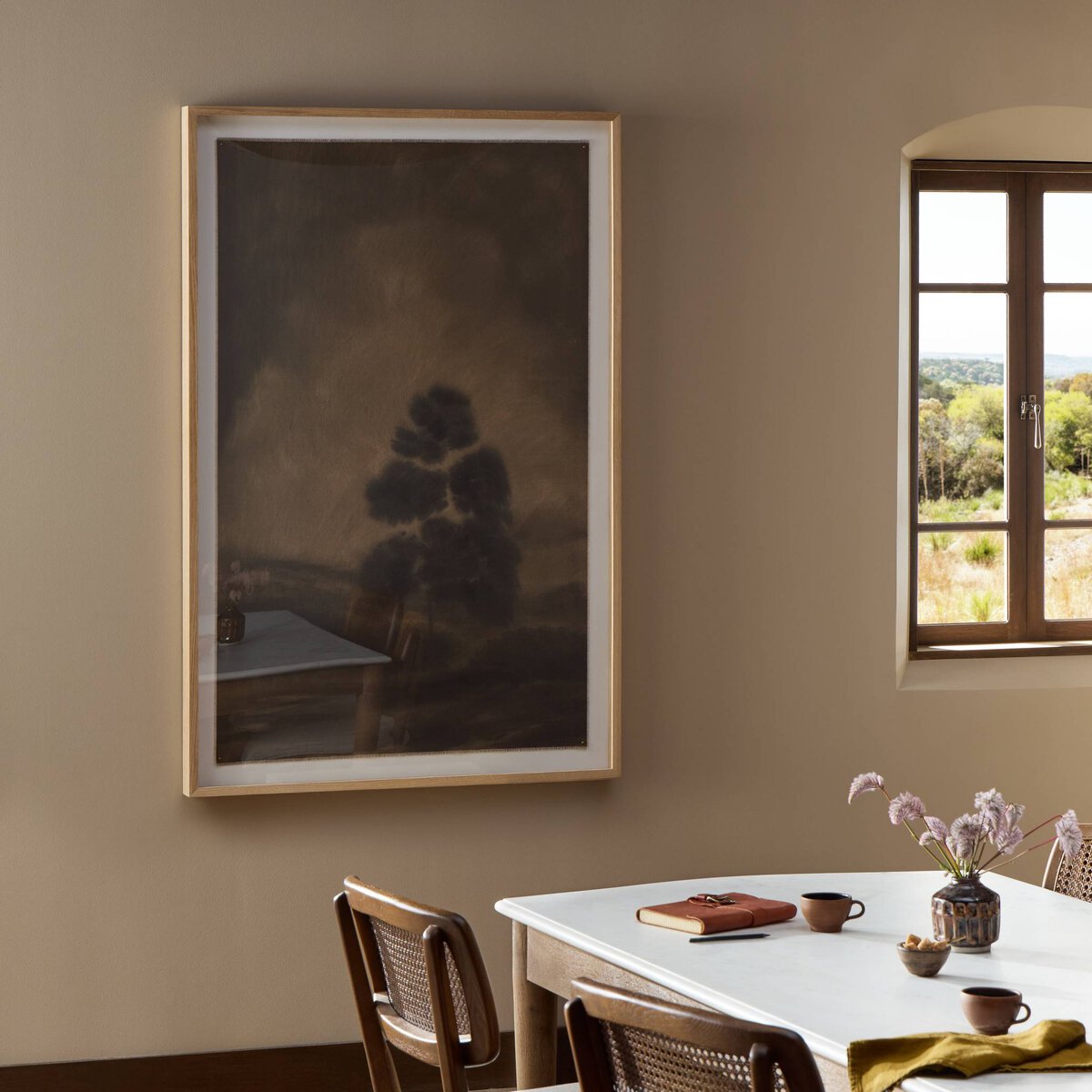 Overall Dimensions 28.00"w x 2.50"d x 40.00"hItem Number 253710-001Colors Vertical Grain 2.5 White Oak, Fredrix 558 Raw Canvas, BW8-97 Polar WhiteMaterials Vertical Grain White Oak, Raw Canvas, Polar White MatWeight 20.00 lbVolume 4.31 cu ftArtist Chelsea FlyMain Color BlackOrientation VerticalPresentation Style Canvas FramedSize LargeSubject Landscapes & SeascapesSuite Solitude