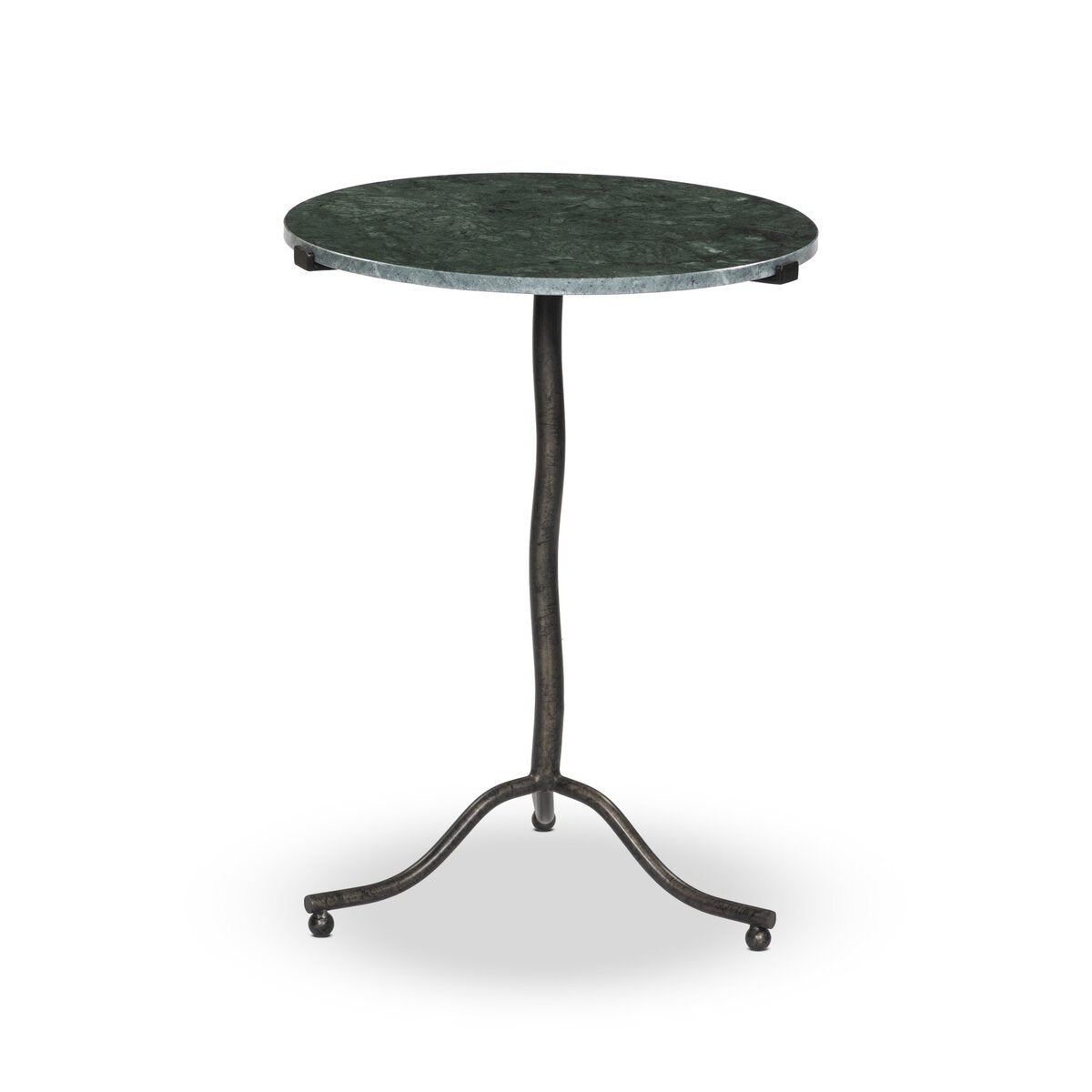 Overall Dimensions 18.25"w x 18.00"d x 24.25"hItem Number 239557-001Colors Veined White Marble, Iron Antique RustMaterials Solid Marble, IronWeight 26.05 lbVolume 5.54 cu ftClearance from Floor 1 4.50"Distance between Legs (Front to Back) 1 14.25"Distance between Legs (Side to Side) 1 14.25"Leg/Base Depth 1 15.75"Leg/Base Height 1 23.66"Leg/Base Width 1 15.75"Overhang Width 1 1.25"Tabletop Thickness 0.59"Drawer Glide Type NoneDrawer Stop Material NoneFunctionality NoneShape Type RoundSuite SophieWeight Capacity 100 lb