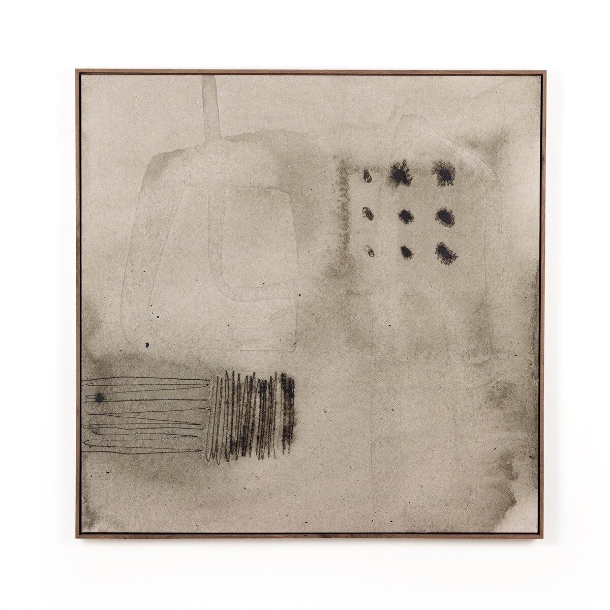Overall Dimensions 32.00"w x 2.00"d x 32.00"hItem Number 235571-002Colors Rustic Walnut Floater, Matte CanvasMaterials Rustic Walnut, Matte CanvasWeight 20.00 lbVolume 3.18 cu ftArtist Jess EngleMain Color Black & WhiteOrientation SquarePresentation Style Canvas Floater FramedSize MediumSubject AbstractSuite Study