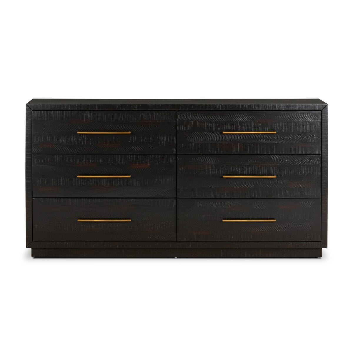 Overall Dimensions 60.00"w x 19.00"d x 31.00"hItem Number 108032-003Colors Burnished Black, Burnished Black SolidMaterials Resawn Mixed Wood Veneer, Solid AcaciaWeight 187.39 lbVolume 31.57 cu ftClearance from Floor 1 1.97"Drawer Depth 1 11.81"Drawer Height 1 6.85"Drawer Width 1 26.18"Door Type No DoorsDrawer Glide Color BlackDrawer Glide Type Sidemount MetalDrawer Joinery Butt JointDrawer Quantity 6.00Drawer Stop Anti Tip Rail YesDrawer Stop Material WoodFrame Construction Joinery Corner-block/CleatFrame Construction Joinery Frame and Panel ConstructionFrame Construction Joinery Mortise and TenonFunctionality DrawersHas Soft Close Drawers YesProtective Feet Leg LevelersShape Type WideSuite SukiWeight Capacity 100 lb