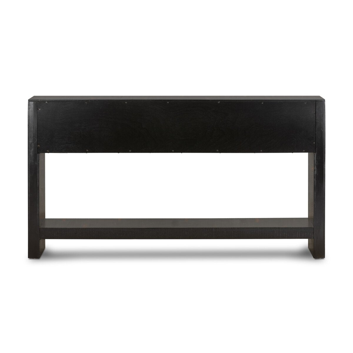 Overall Dimensions 59.75"w x 13.75"d x 32.25"hItem Number VHAD-F085Colors Burnished Black, Burnished Black SolidMaterials Resawn Mixed Wood Veneer, Solid AcaciaWeight 83.77 lbVolume 25.36 cu ftClearance from Floor 1 3.94"Distance between Legs (Side to Side) 1 55.12"Drawer Depth 1 10.47"Drawer Height 1 4.88"Drawer Width 1 25.00"Fixed Shelf Depth 1 13.78"Fixed Shelf Height 1 2.36"Fixed Shelf Width 1 55.12"Interior Section Depth 1 13.78"Interior Section Height 1 14.96"Interior Section Width 1 55.12"Leg/Base Depth 1 13.78"Leg/Base Height 1 32.28"Leg/Base Width 1 2.36"Tabletop Thickness 2.36"Door Type No DoorsDrawer Glide Color BlackDrawer Glide Type Sidemount MetalDrawer Joinery Butt JointDrawer Quantity 2.00Drawer Stop Material NoneFixed Shelf Qty 1.00Fixed Shelves YesFrame Construction Joinery Frame and Panel ConstructionFrame Construction Joinery Mortise and TenonFunctionality DrawersFunctionality ShelvesHas Leveler YesInterior Section Quantity 1.00Protective Feet Leg LevelersShape Type RectangleSuite SukiWeight Capacity 100 lb