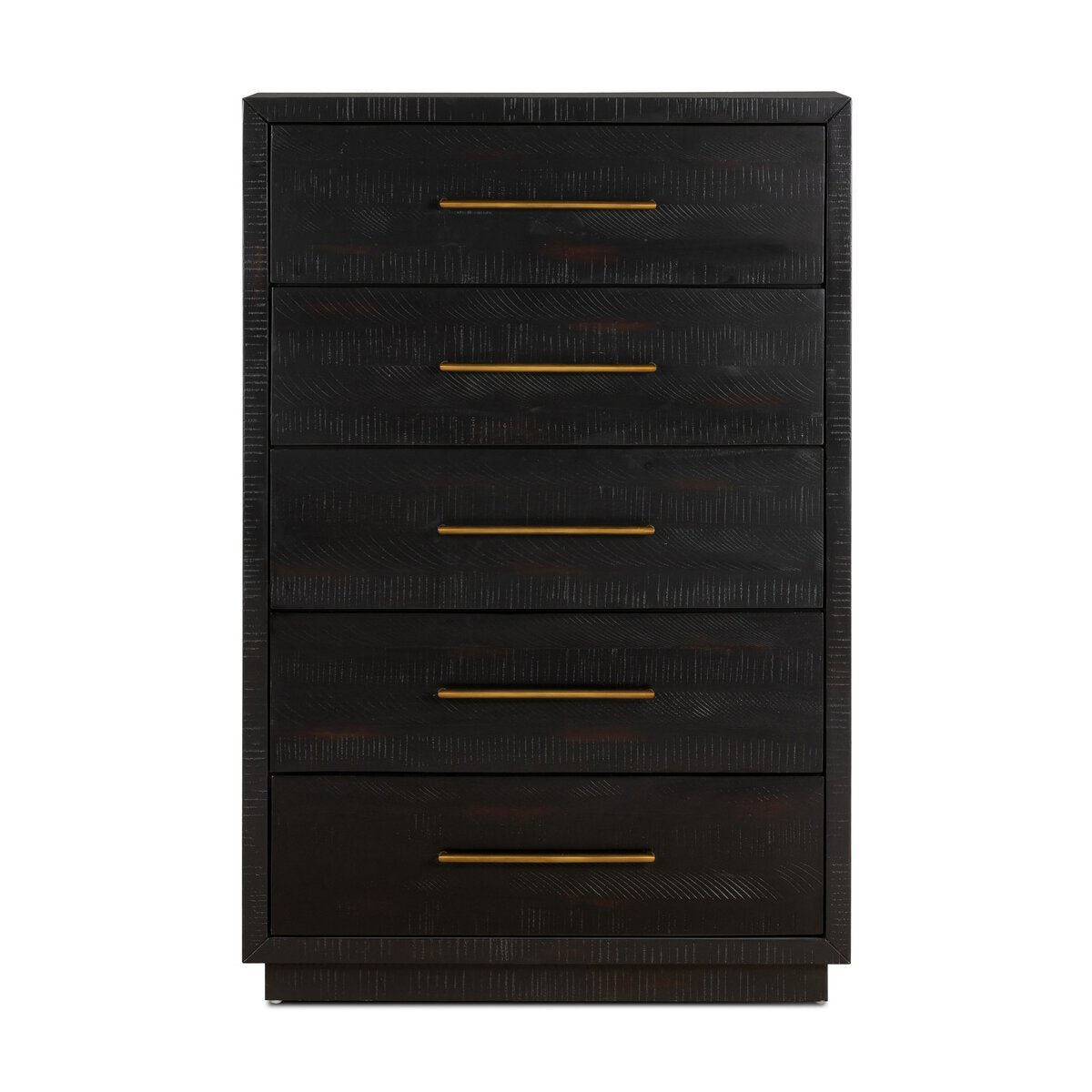 Overall Dimensions 30.00"w x 19.00"d x 45.00"hItem Number 108034-003Colors Burnished Black, Burnished Black SolidMaterials Resawn Mixed Wood Veneer, Solid AcaciaWeight 156.53 lbVolume 23.34 cu ftClearance from Floor 1 1.97"Drawer Depth 1 11.81"Drawer Height 1 5.91"Drawer Width 1 25.20"Door Type No DoorsDrawer Glide Color BlackDrawer Glide Type Sidemount MetalDrawer Joinery Butt JointDrawer Quantity 5.00Drawer Stop Material NoneFrame Construction Joinery Frame and Panel ConstructionFrame Construction Joinery Mortise and TenonFunctionality DrawersHas Leveler YesProtective Feet Leg LevelersShape Type TallSuite SukiWeight Capacity 100 lb