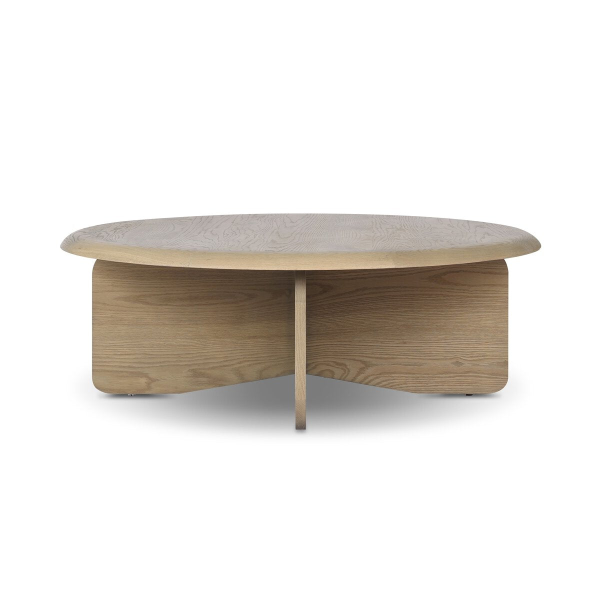 A shape-driven piece inspired by clean Nordic design. Softened edges and a curved base craft a sense of flow, accentuated by cathedral grain oak with beautiful natural warmth.