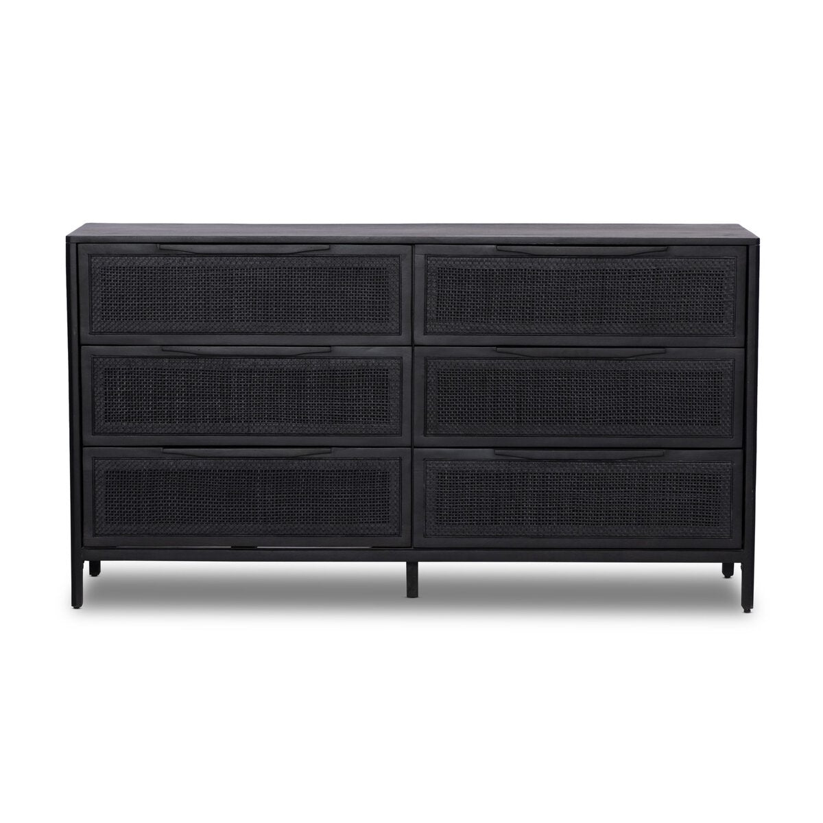 Overall Dimensions 58.00"w x 18.00"d x 31.50"hItem Number 224923-005Colors Natural Cane, Natural MangoMaterials Cane, Solid MangoWeight 164.68 lbVolume 28.96 cu ftClearance from Floor 1 4.02"Drawer Depth 1 12.20"Drawer Height 1 6.77"Drawer Width 1 25.39"Door Type No DoorsDrawer Glide Color SilverDrawer Glide Type Sidemount MetalDrawer Joinery French DovetailDrawer Quantity 6.00Drawer Stop Anti Tip Rail YesDrawer Stop Material WoodFrame Construction Joinery Mortise and TenonFunctionality DrawersHas Leveler YesProtective Feet Leg LevelersShape Type WideSuite SydneyWeight Capacity 100 lb