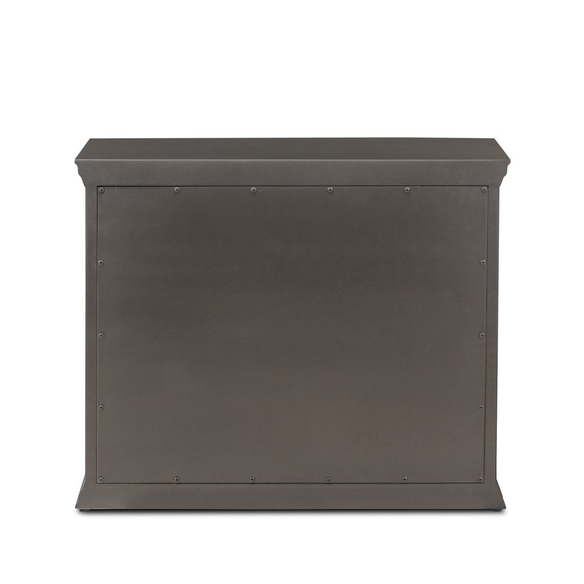 Overall Dimensions 32.00"w x 17.00"d x 26.50"hItem Number 250444-001Colors Smooth BronzeMaterials IronWeight 113.54 lbVolume 16.95 cu ftDrawer Depth 1 14.21"Drawer Height 1 6.10"Drawer Width 1 25.20"Anti-Tip Kit Included? YesDoor Type No DoorsDrawer Glide Color BlackDrawer Glide Type Sidemount MetalDrawer Quantity 3.00Drawer Stop Anti Tip Rail YesDrawer Stop Material MetalFrame Construction Joinery Frame and Panel ConstructionFunctionality DrawersHas Leveler YesProtective Feet Leg LevelersShape Type RectangleSuite TaleseWeight Capacity 100 lb