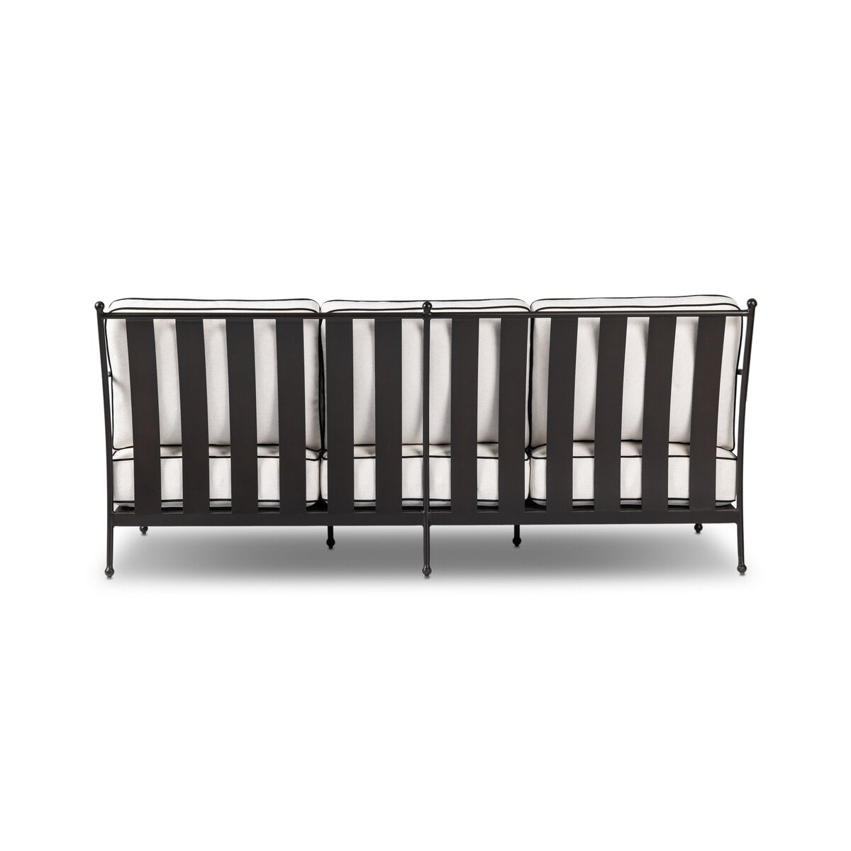 Overall Dimensions 76.00"w x 34.50"d x 33.00"hItem Number 250711-001Colors Alessi Linen, Matte Gunmetal, Montreux ObsidianMaterials 100% Polypropylene, Aluminum, 100% AcrylicFabric PerformanceWeight 110.23 lbVolume 57.77 cu ftArm Height from Floor 24.75"Arm Height from Seat 8.50"Arm Length 29.00"Arm Width 0.75"Back Cushion Depth 1 7.75"Back Cushion Height 1 19.25"Back Cushion Width 1 25.00"Clearance from Floor 1 7.50"Distance between Legs (Front to Back) 1 27.50"Distance between Legs (Side to Side) 1 73.75"Seat Back Height 16.75"Seat Cushion Depth 1 28.25"Seat Cushion Thickness 1 7.75"Seat Cushion Width 1 25.00"Seat Depth 1 21.00"Seat Height 1 16.25"Seat Width 1 74.25"Cleaning Code