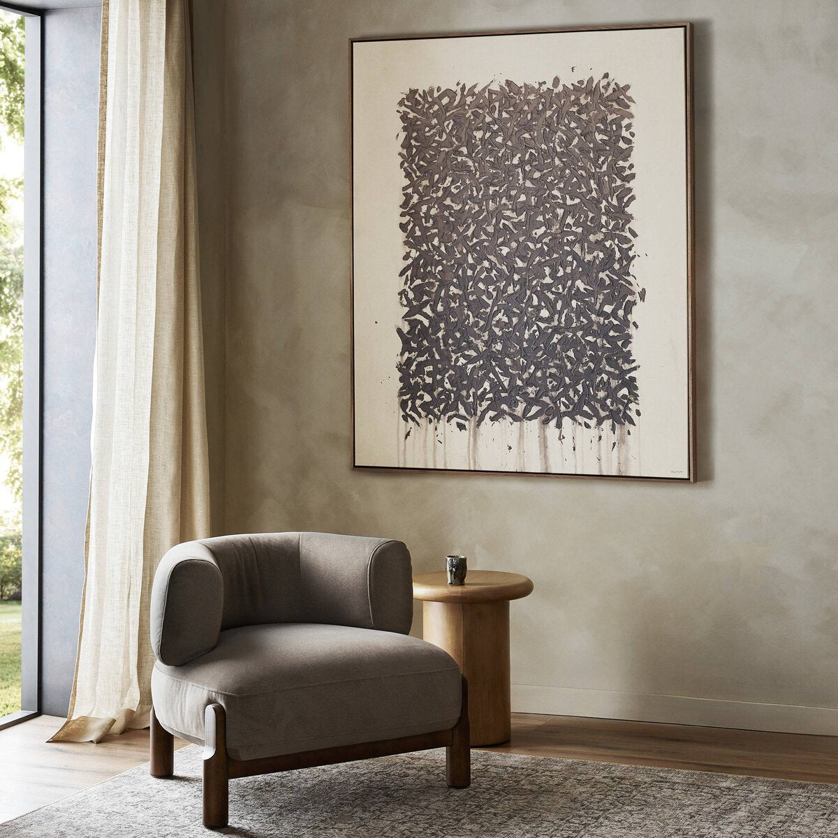 Overall Dimensions 26.00"w x 2.00"d x 32.00"hItem Number 245029-002Colors Rustic Walnut Floater, Matte CanvasMaterials Rustic Walnut, Matte CanvasWeight 20.00 lbVolume 2.65 cu ftArtist Tyler GuinnMain Color NeutralOrientation VerticalPresentation Style Canvas Floater FramedSize MediumSubject AbstractSuite Tender Provisions