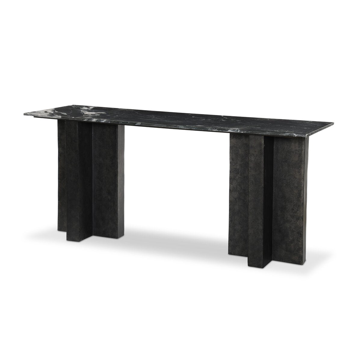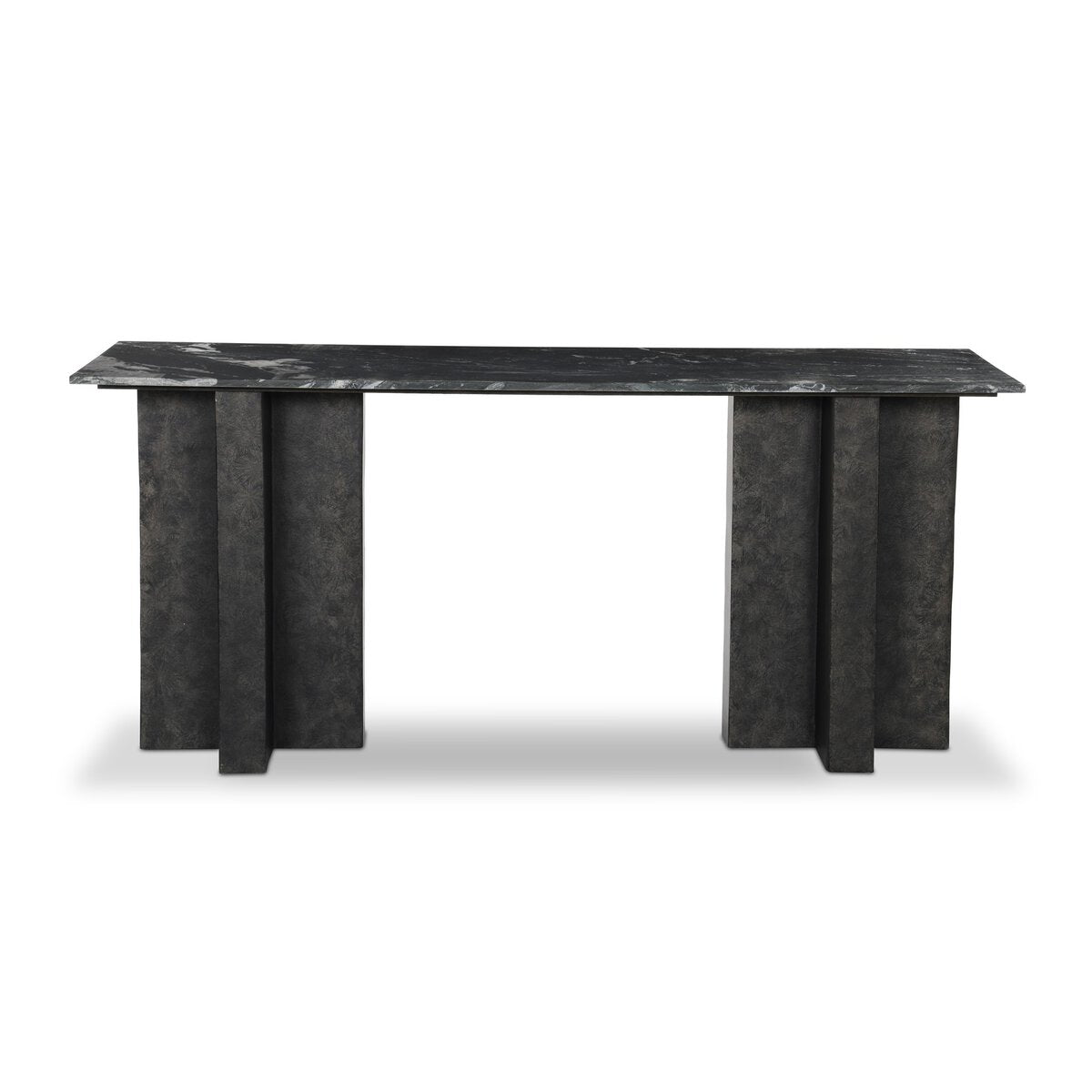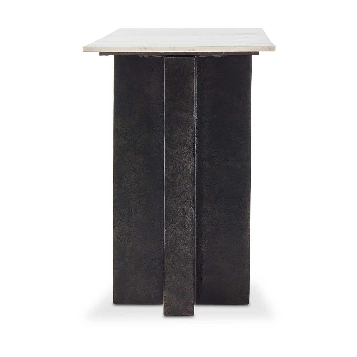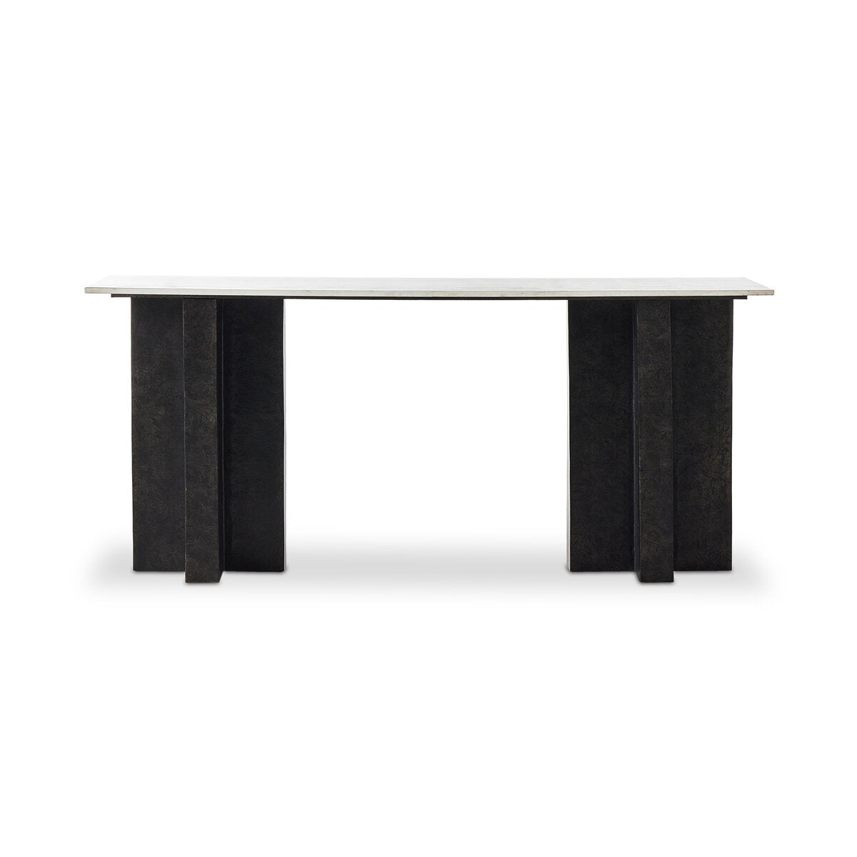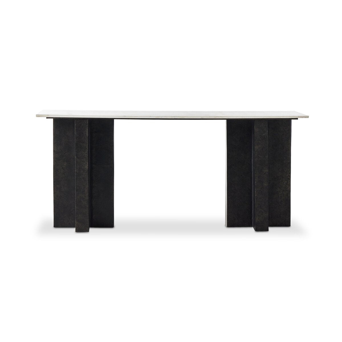 Overall Dimensions 72.00"w x 22.00"d x 31.25"hItem Number 239404-001Colors Polished White Marble, Raw BlackMaterials Solid Marble, AluminumWeight 156.52 lbVolume 18.65 cu ftClearance from Floor 1 30.66"Distance between Legs (Side to Side) 1 30.00"Leg/Base Depth 1 16.50"Leg/Base Height 1 30.19"Leg/Base Width 1 17.75"Overhang Width 1 3.25"Tabletop Thickness 0.59"Door Type No DoorsDrawer Glide Type NoneDrawer Stop Material NoneFunctionality NoneHas Leveler YesProtective Feet Leg LevelersShape Type RectangleSuite TerrellWeight Capacity 200 lb