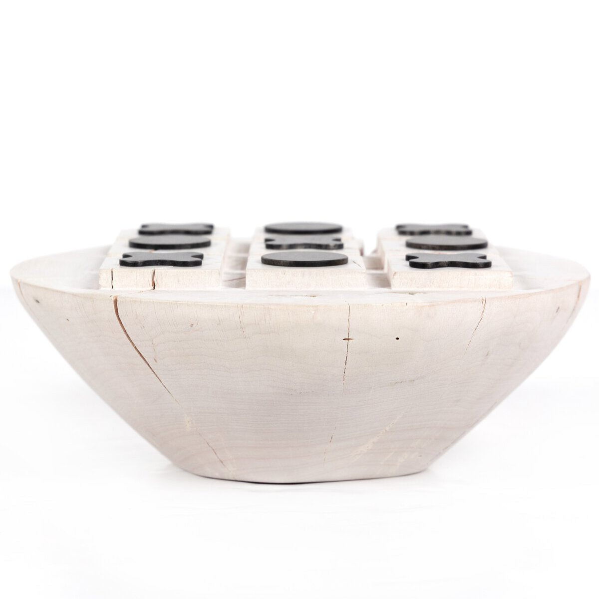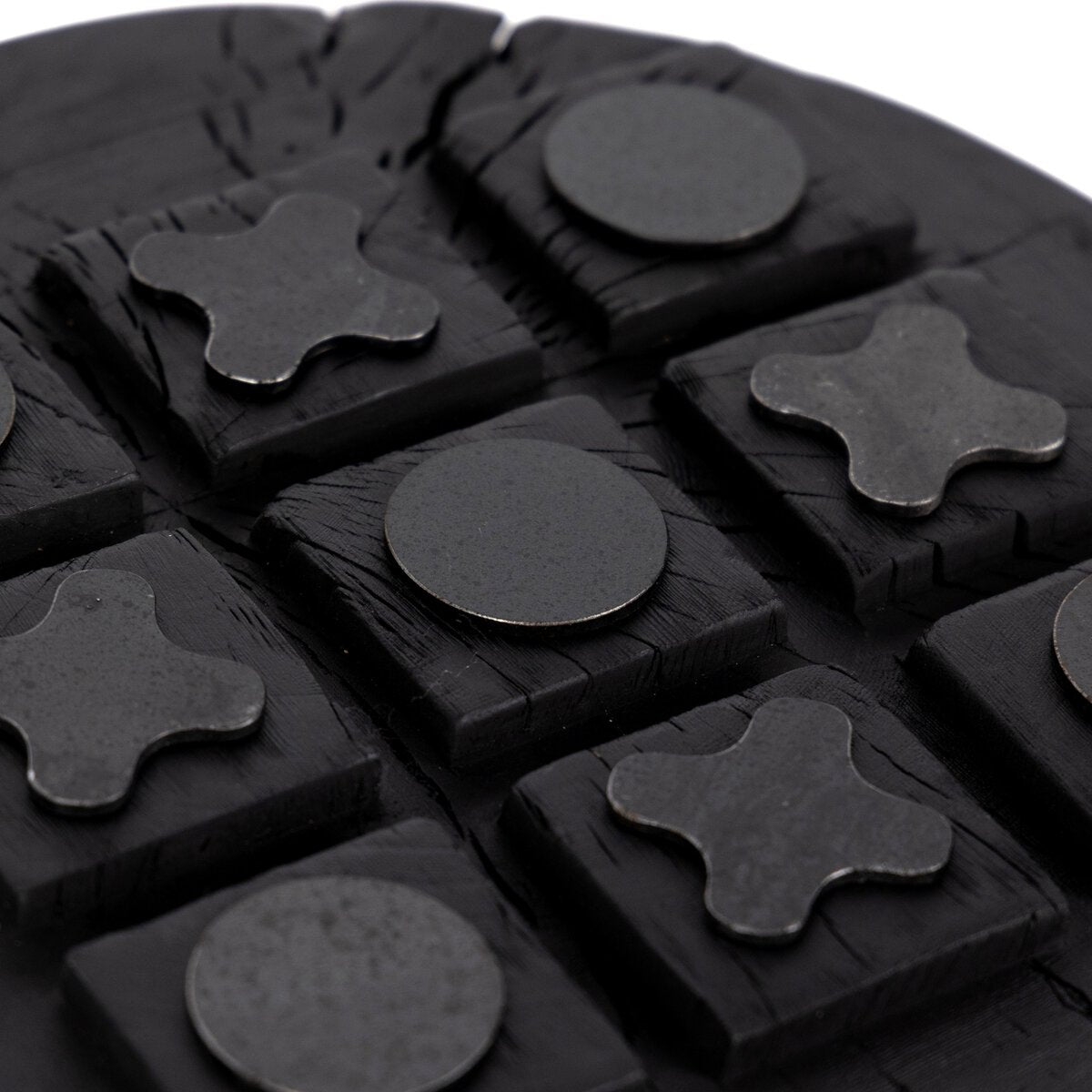 Place a decorative game of Tic Tac Toe just about anywhere, for a rich, primitive look with lightheartedness. Made from the solid wood remnants in a family-run factory in Mexico to maximize every part of a naturally fallen tree and minimize waste. Includes bronzed iron letters.
